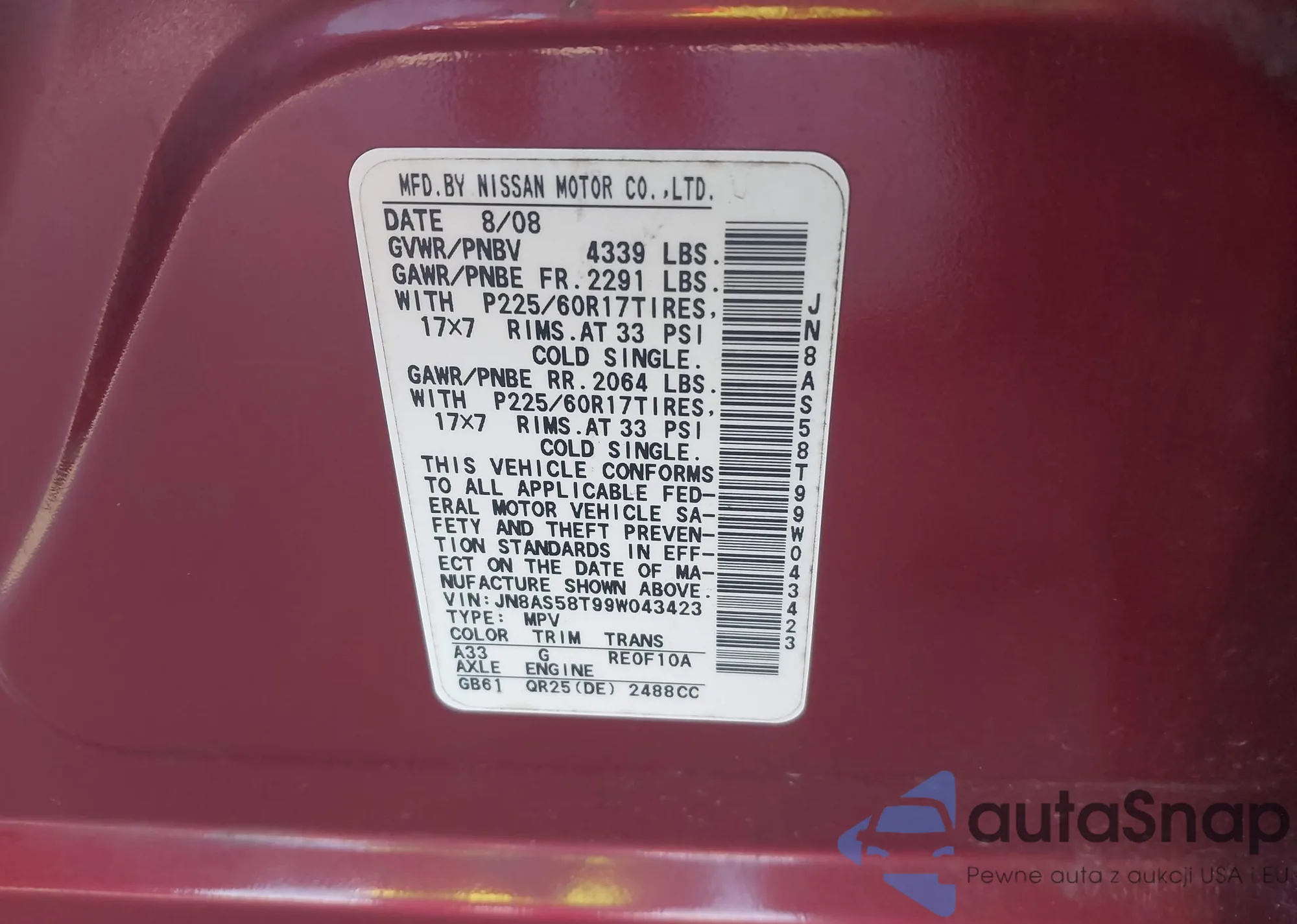 • VIN JN8AS58VX8W143997