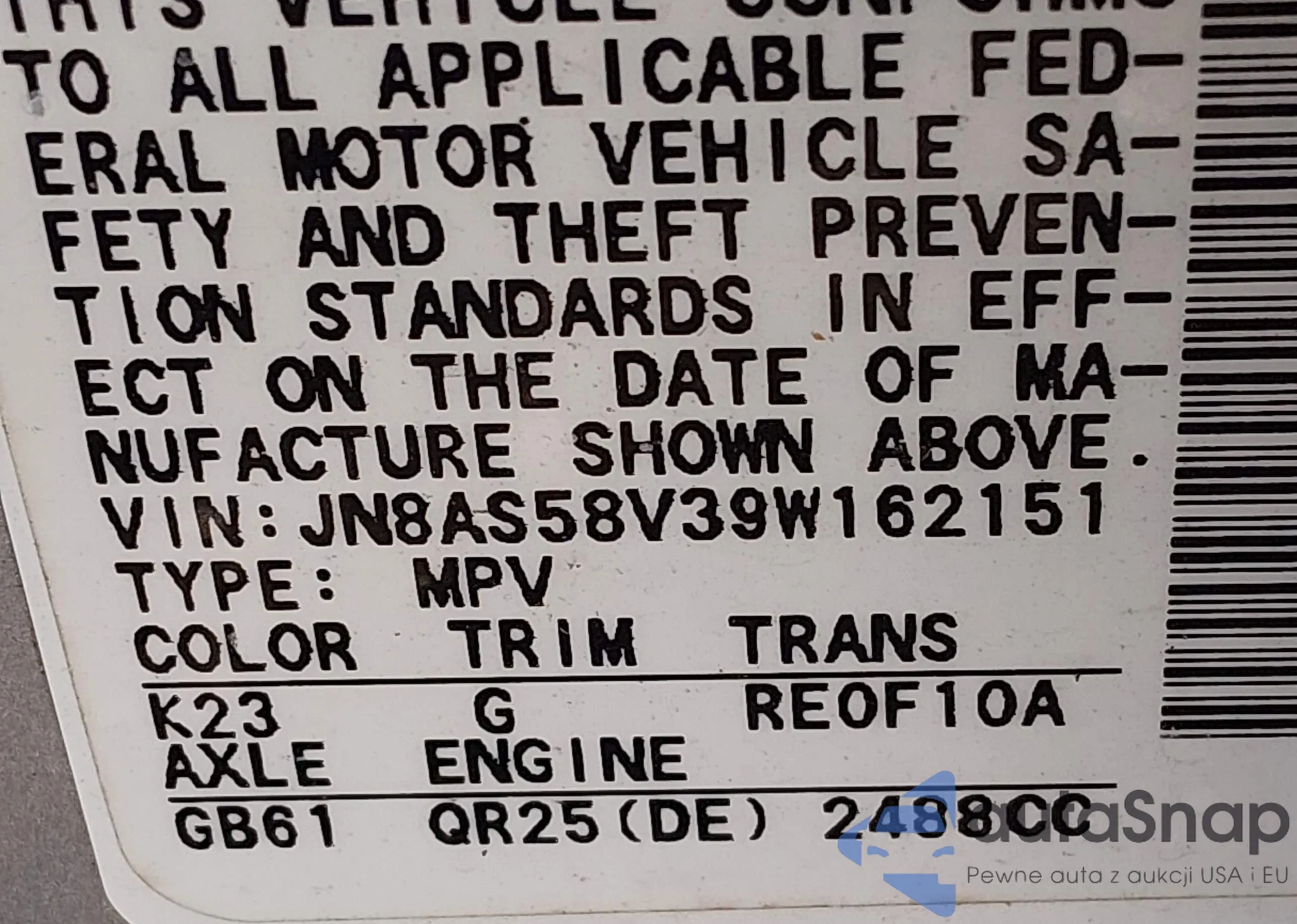• VIN JN8AS58V39W162151