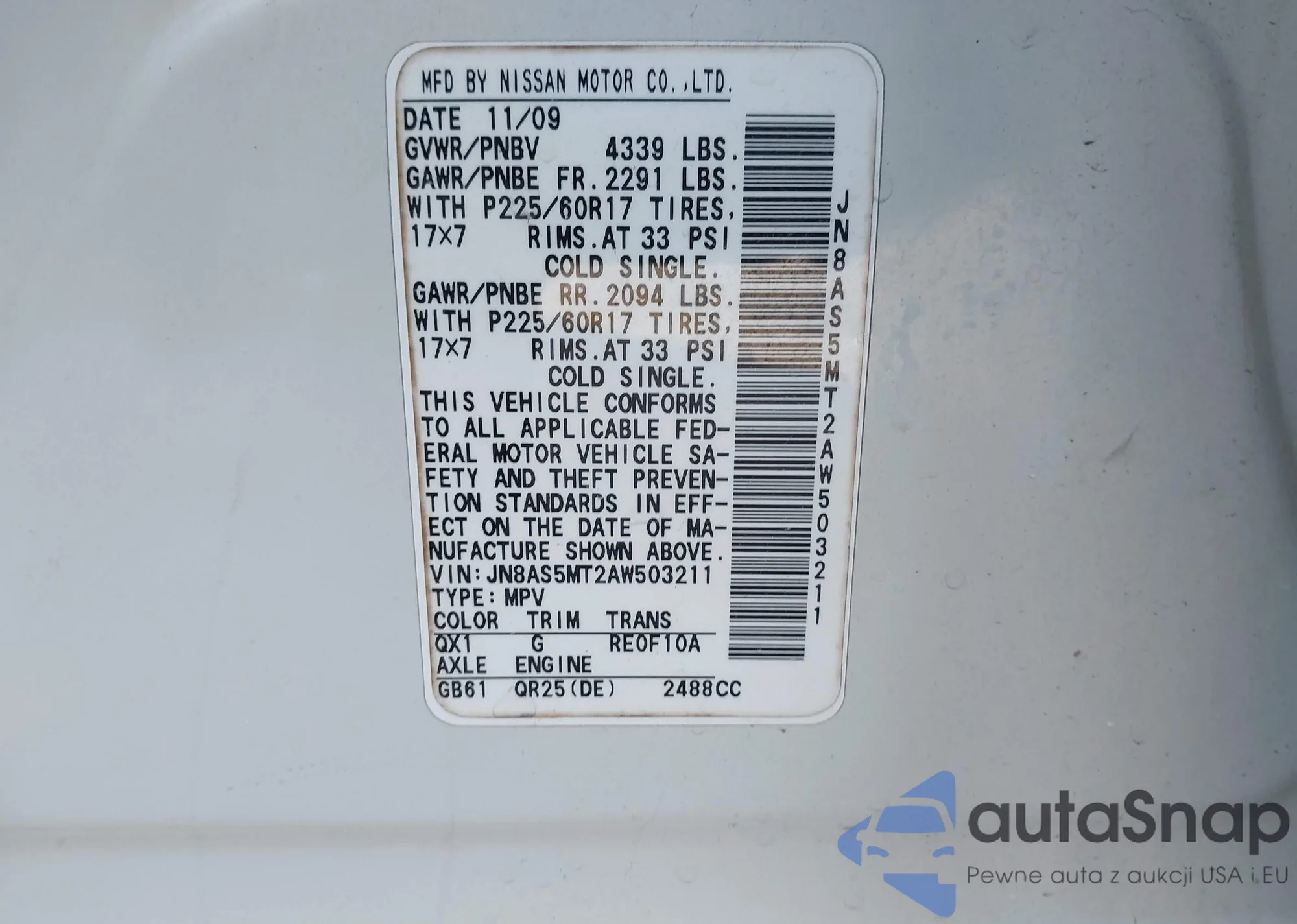 • VIN JN8AS5MT2AW503211