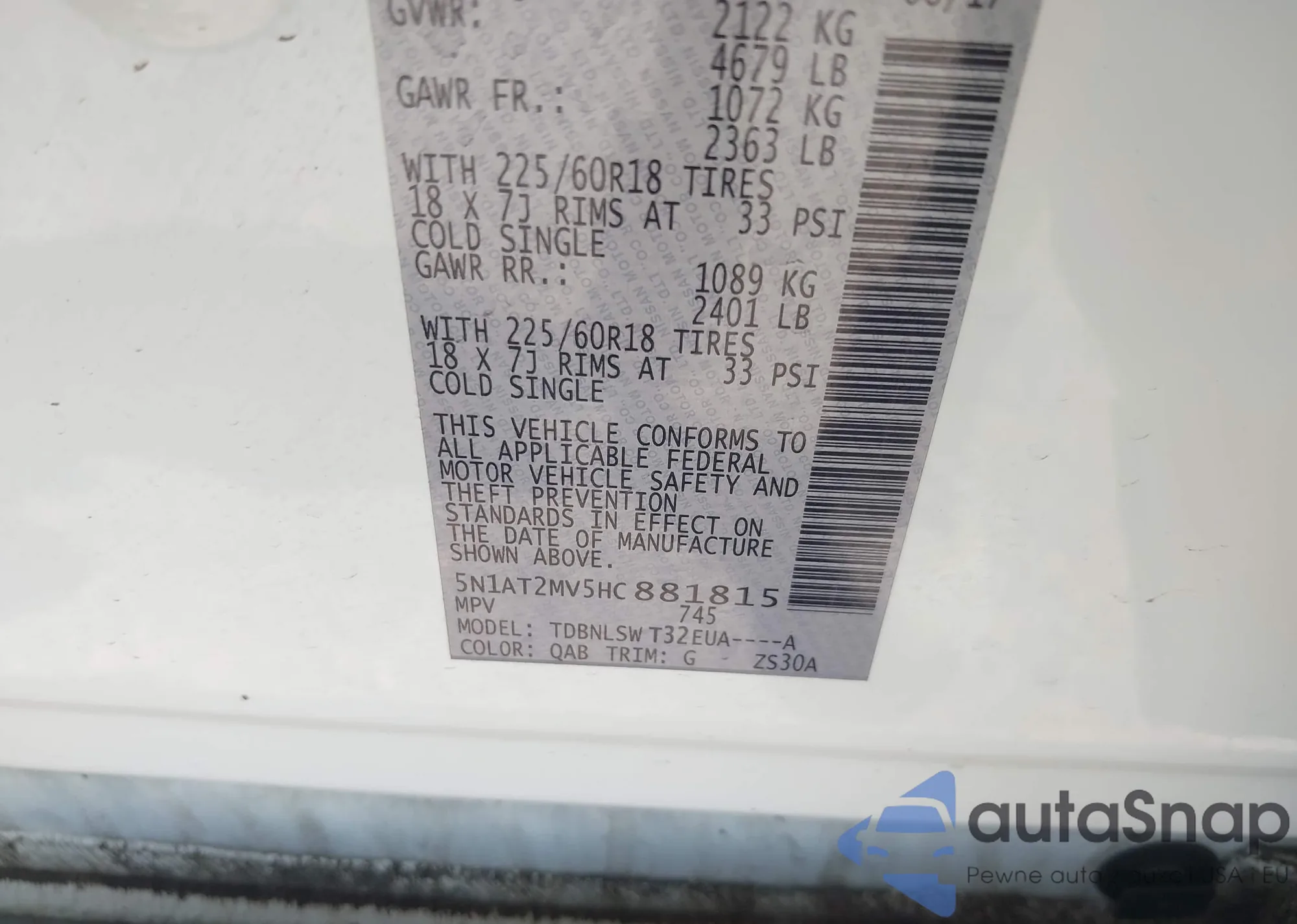 • VIN 5N1AT2MV5HC881815