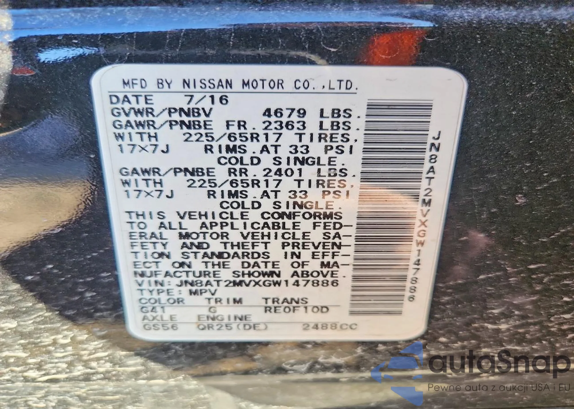 LOT: 76347515 VIN: JN8AT2MVXGW147886