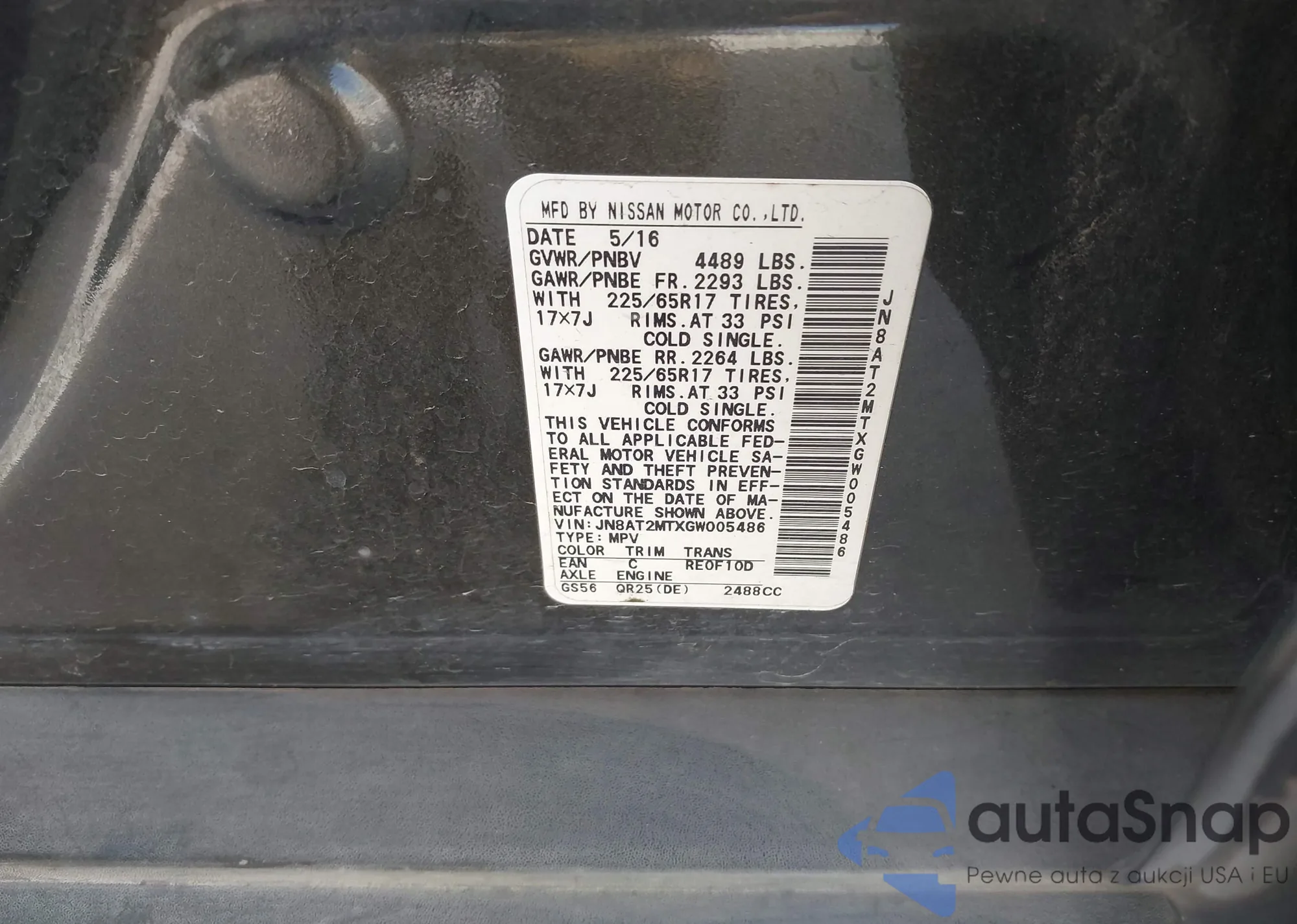 LOT: 44091959 VIN: JN8AT2MTXGW005486