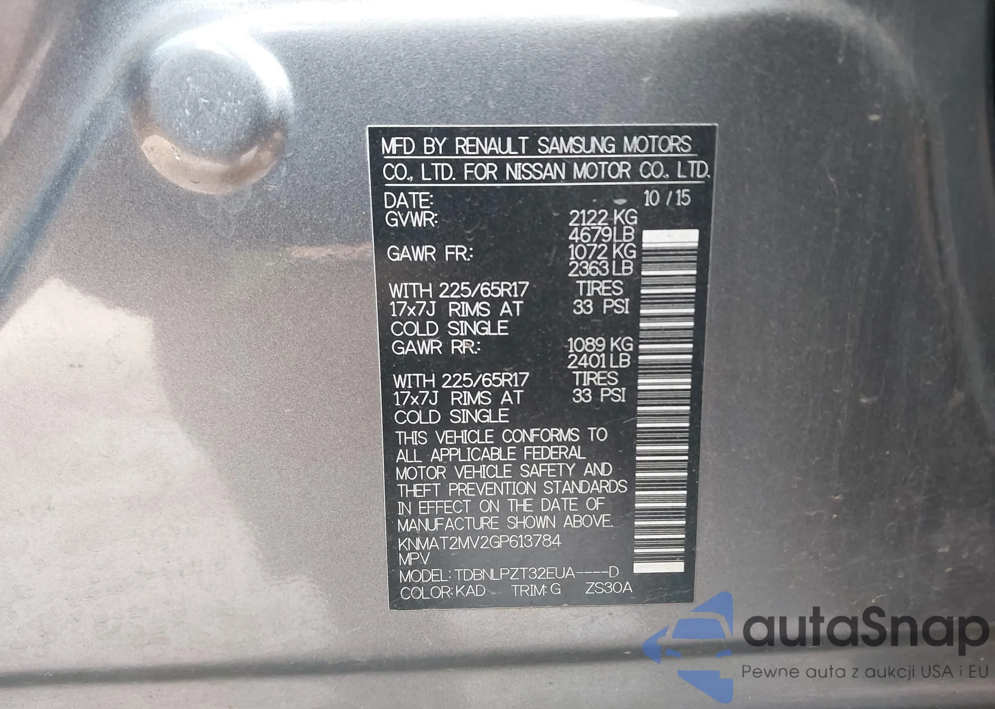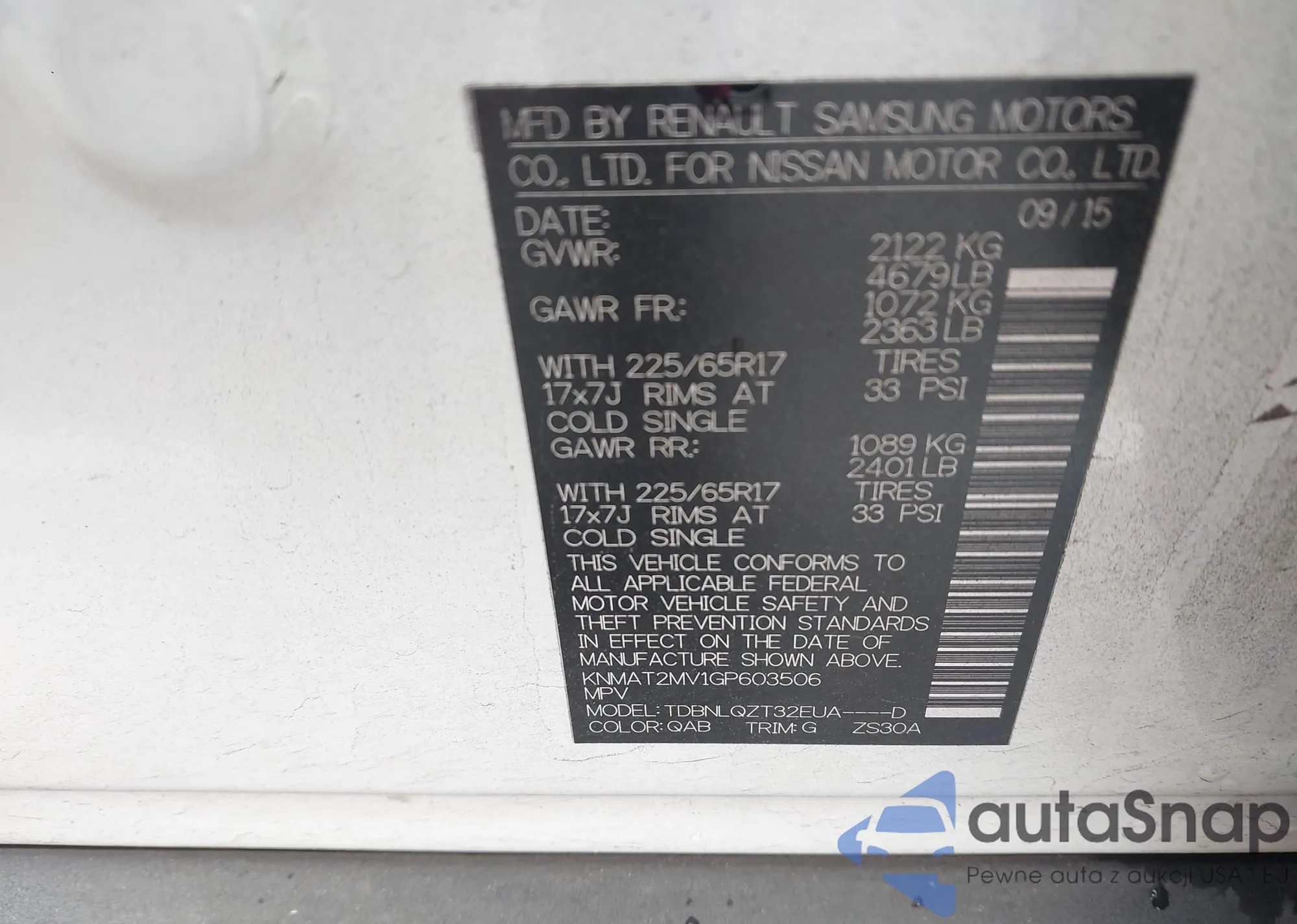 • VIN KNMAT2MV1GP603506