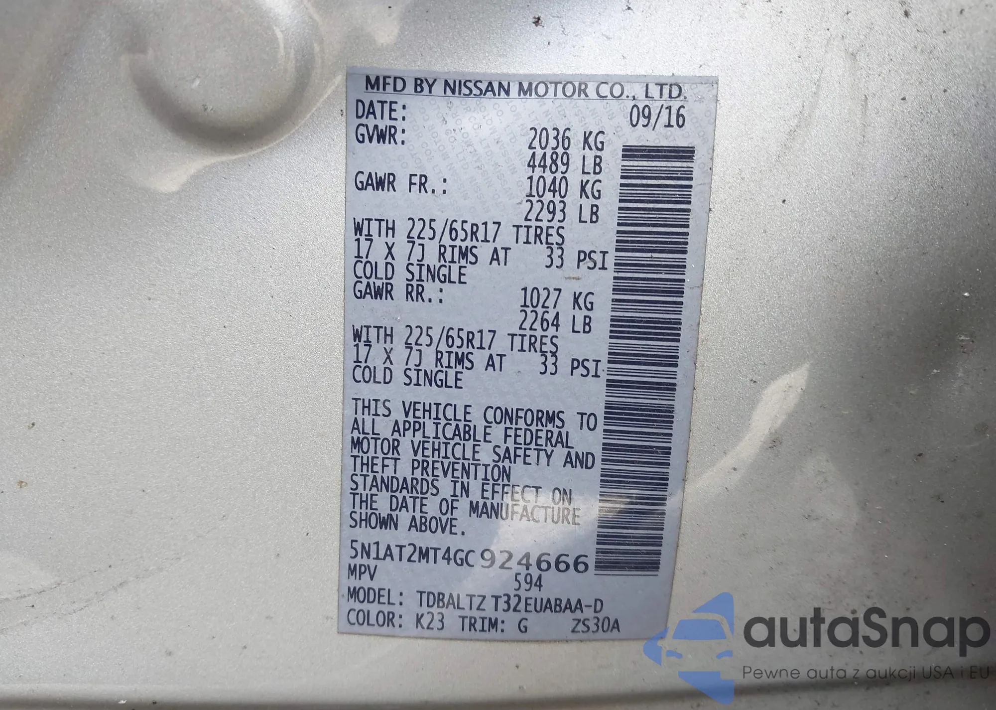 LOT: 44049566 VIN: JN8AT2MT6HW406180