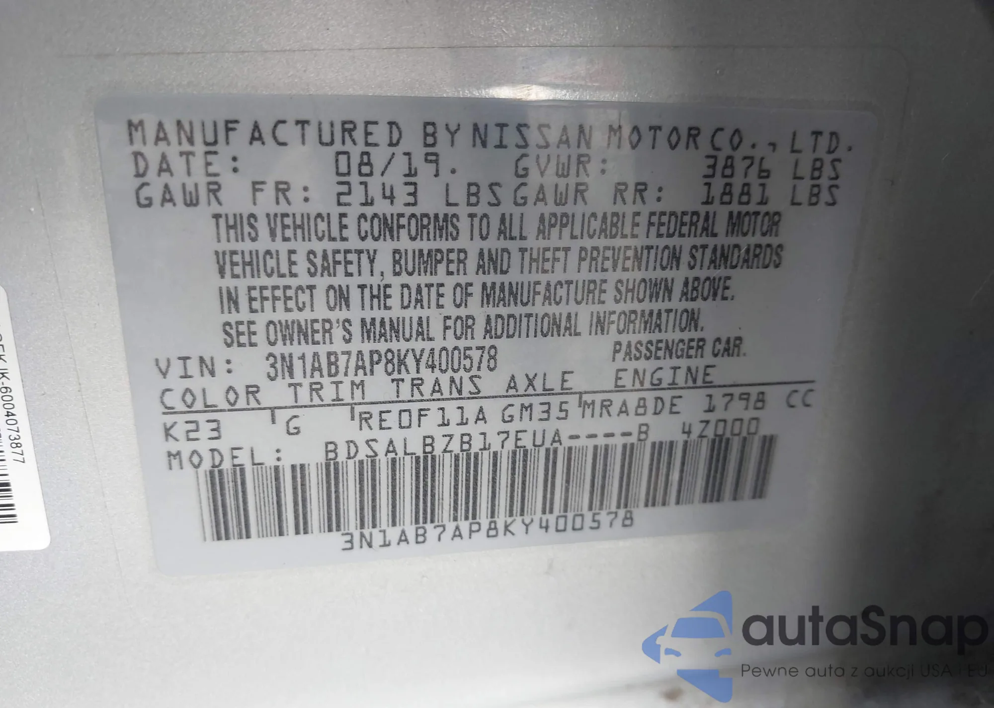 Хотите купить Nissan Sentra из Америки? Autasnap предлагает надежный сервис по импорту автомобилей из США в Польшу. Мы поможем вам не только с приобретением этой популярной модели, но и с ее конверсией для европейских стандартов. Замена фар, стекол, поворотников и навигации сделает ваш Nissan Sentra полностью готовым для эксплуатации в Европе.