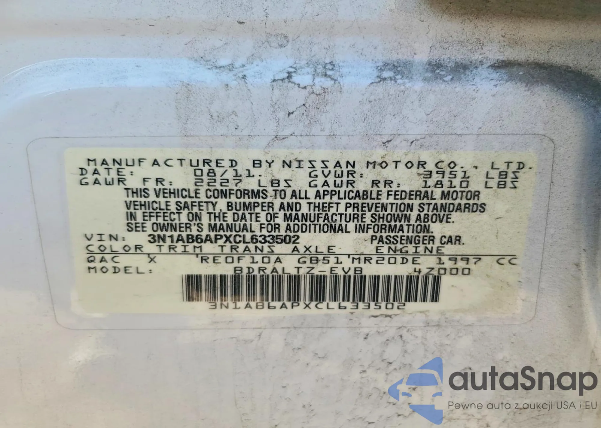• VIN 3N1AB6APXCL633502