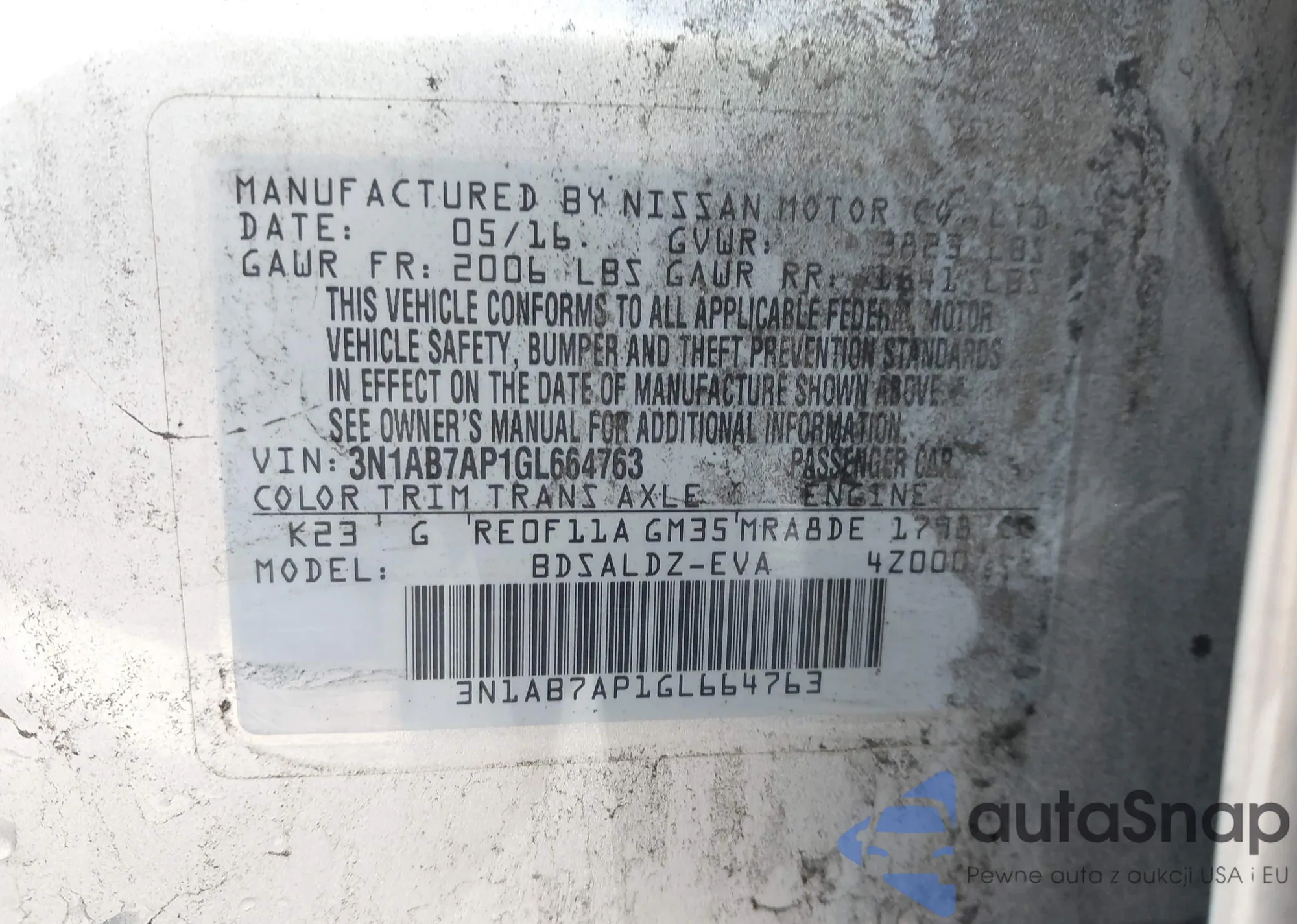 LOT: 66947565 VIN: 3N1AB7AP6GL678724