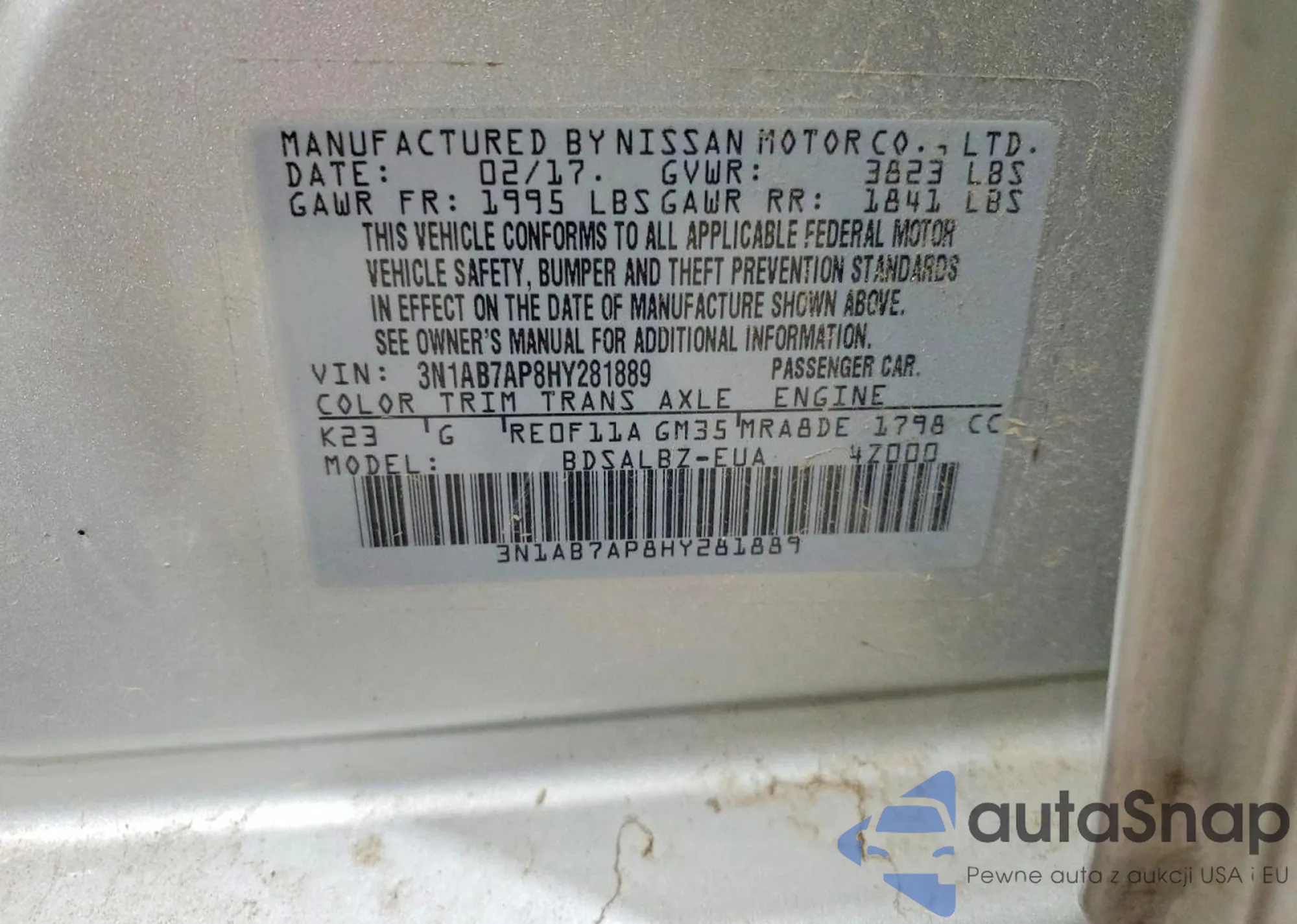 • VIN 3N1AB7AP8HY281889