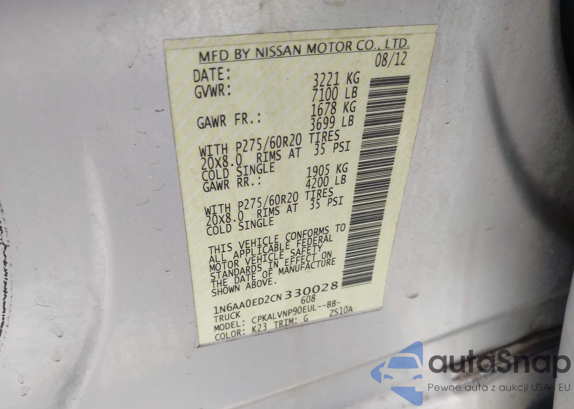 • VIN 1N6AA0ED2CN330028