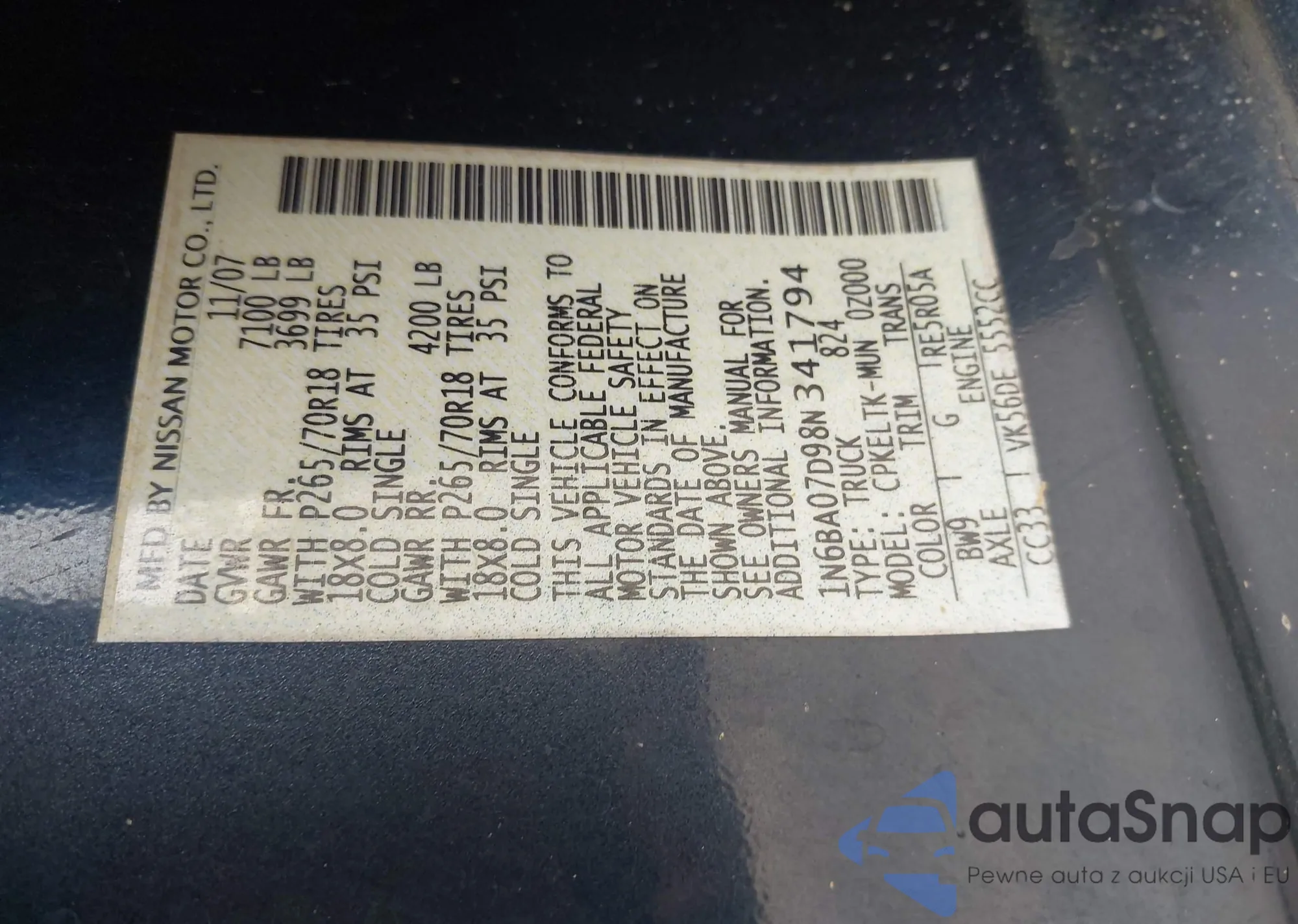 • VIN 1N6BA07D98N341794