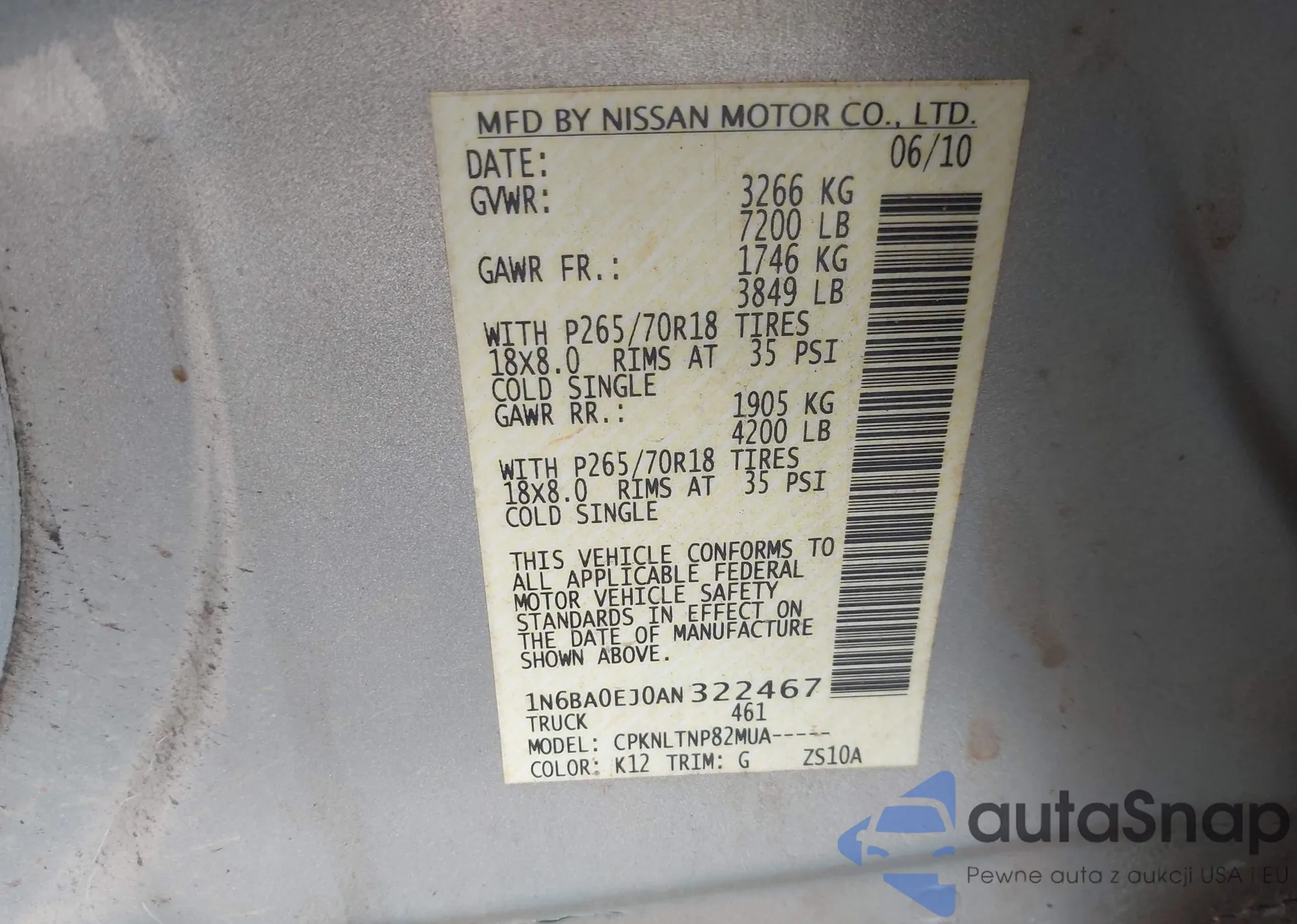 • VIN 1N6BA0EJ0AN322467