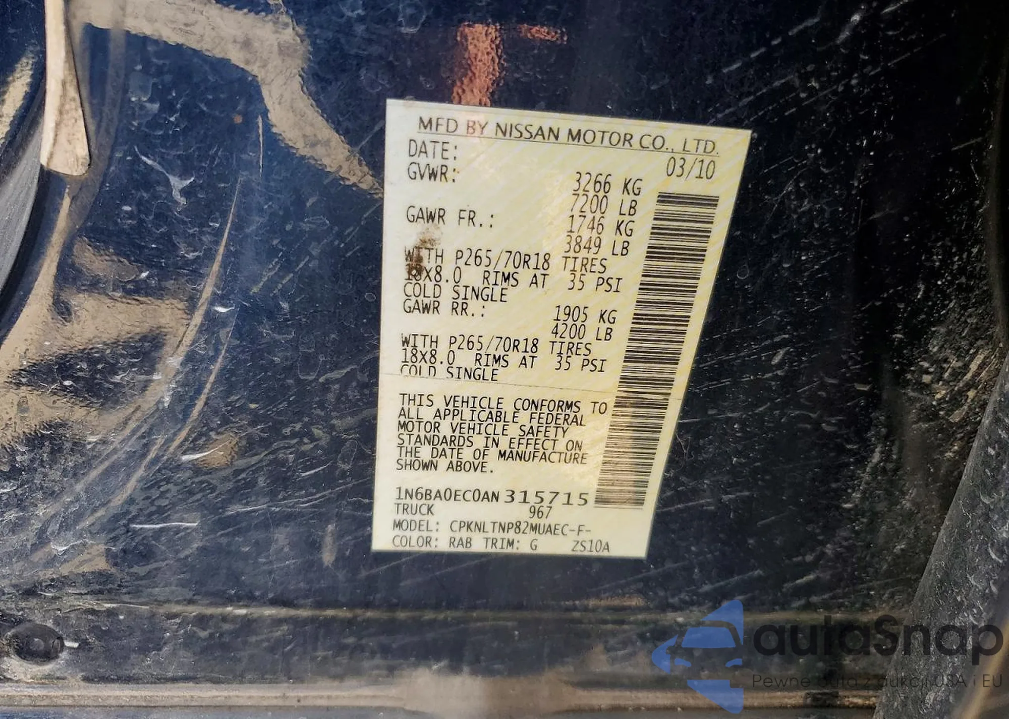 • VIN 1N6BA0EC0AN315715