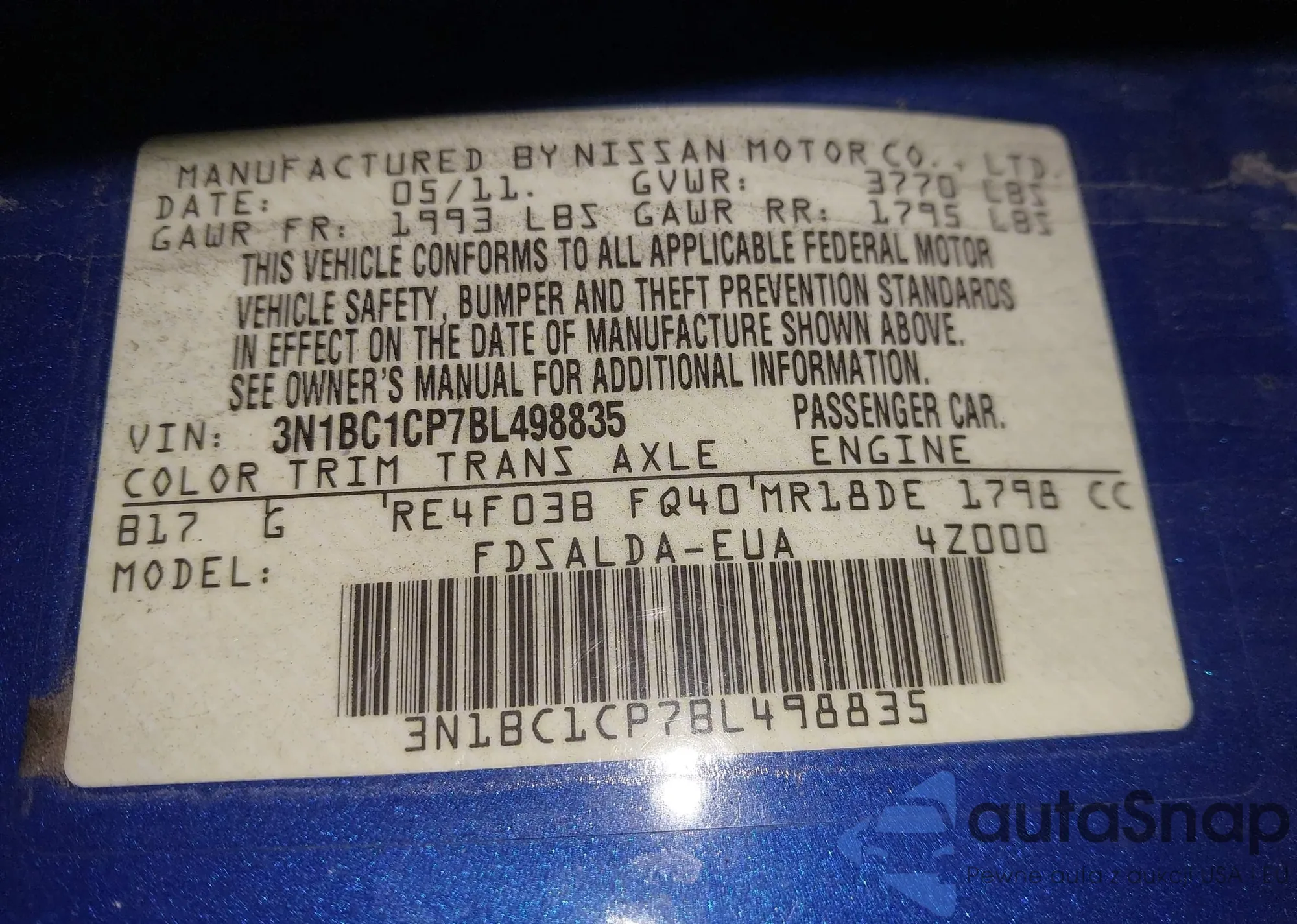 • VIN 3N1BC1CP7BL498835