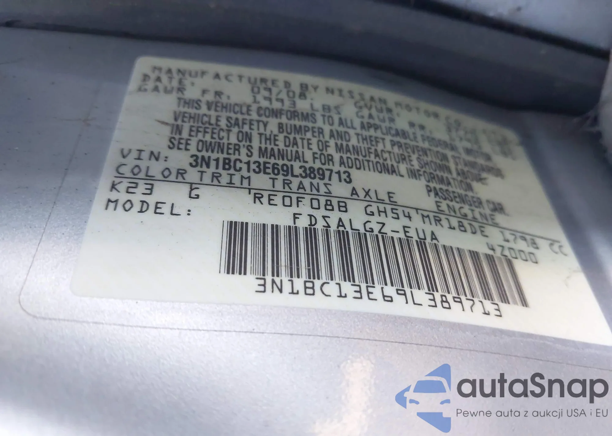 • VIN 3N1BC13E69L389713