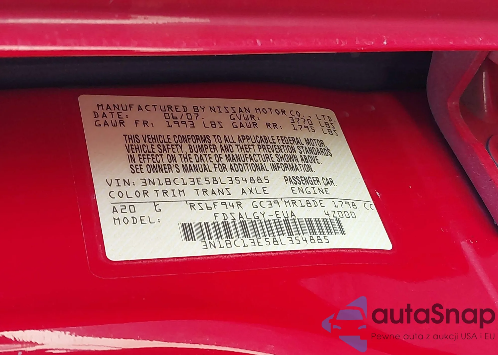 • VIN 3N1BC13E58L354885