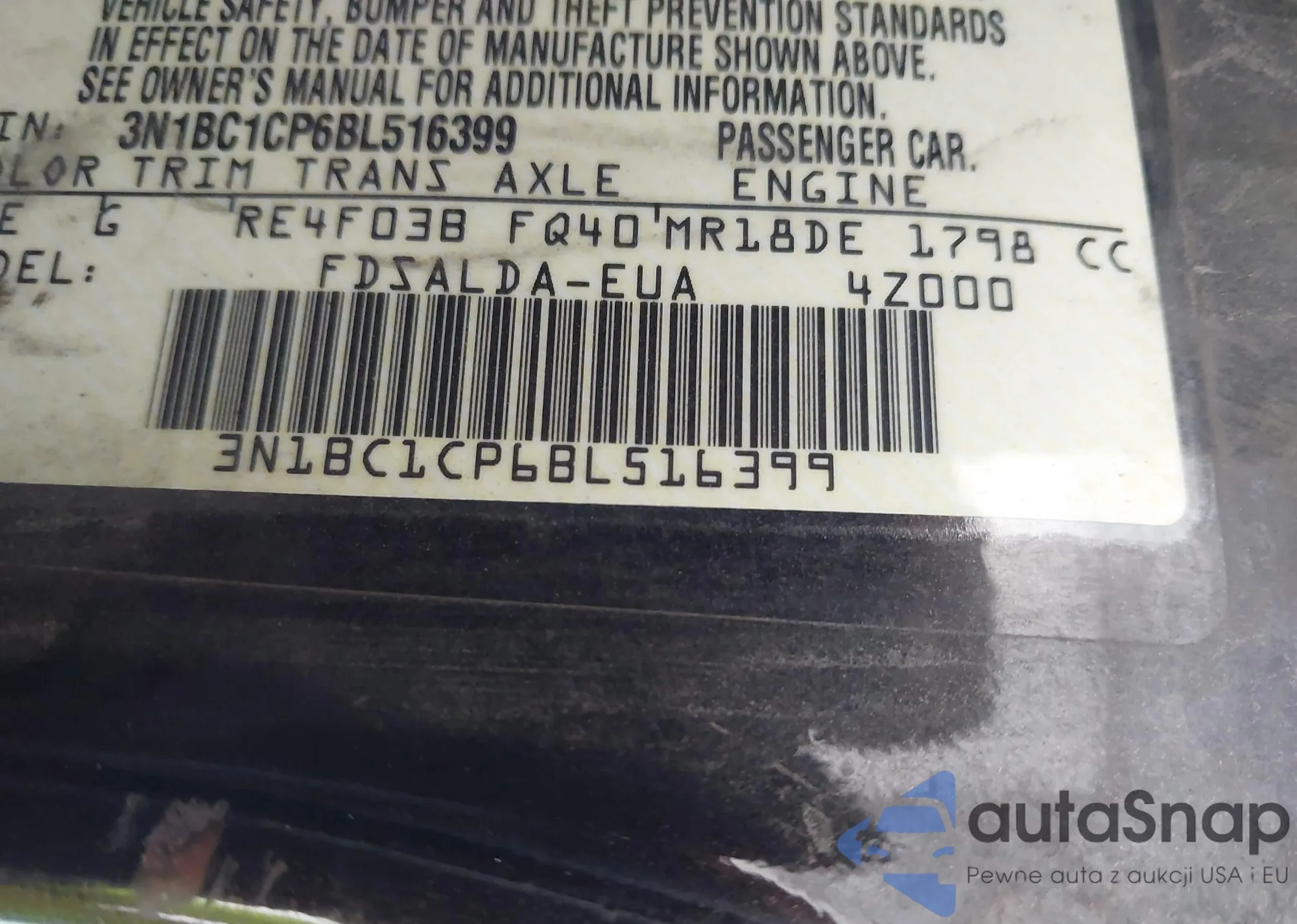 • VIN 3N1BC1CP6BL516399
