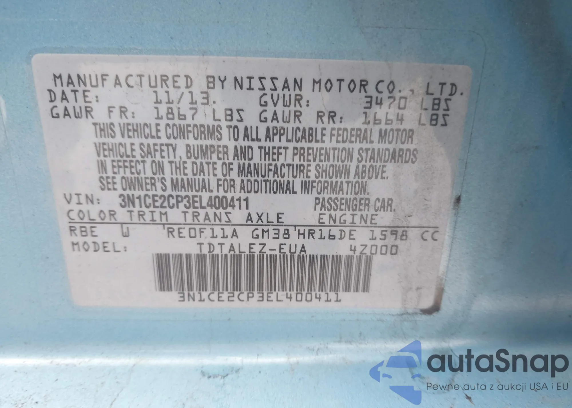 • VIN 3N1CE2CP3EL400411