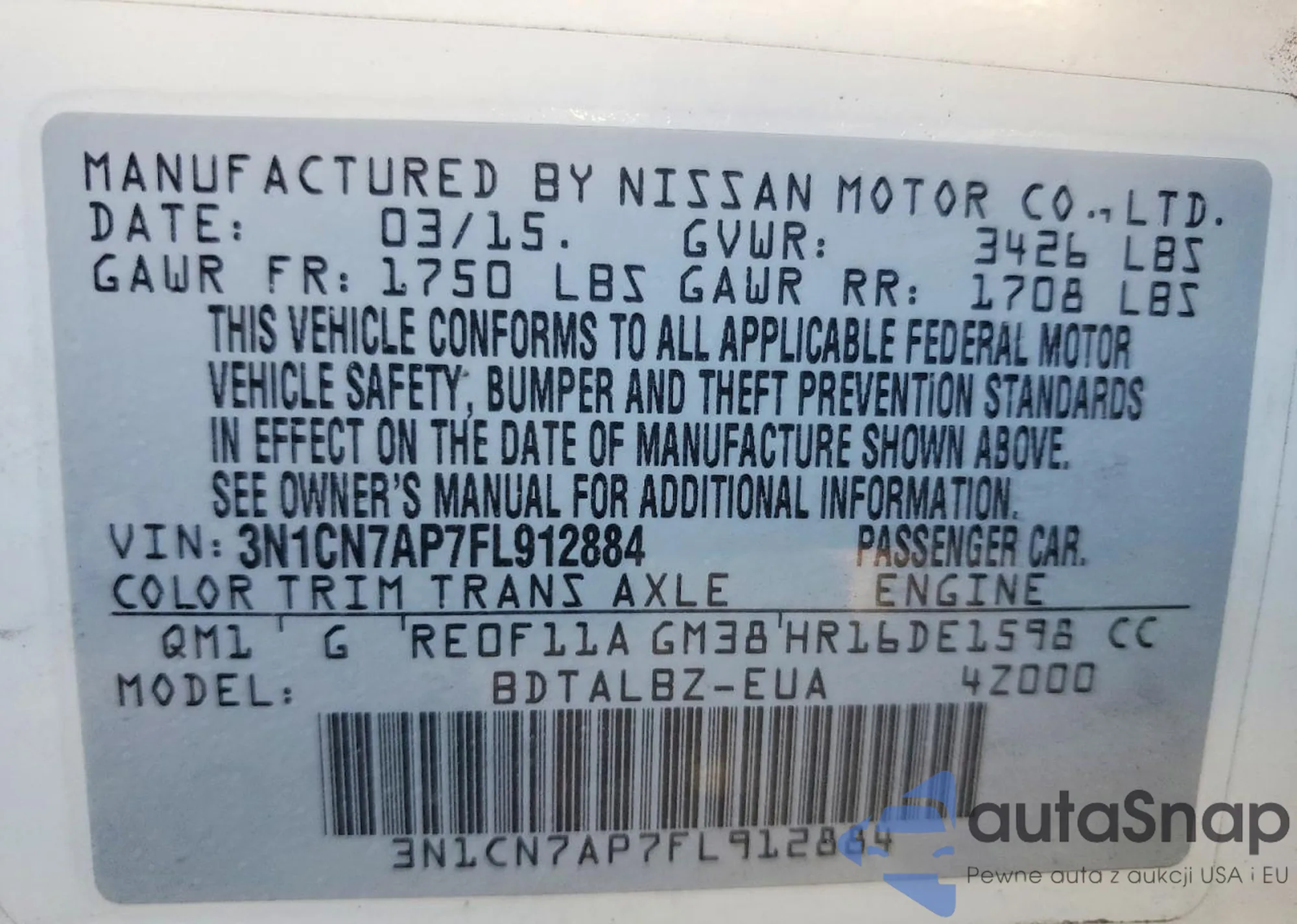 • VIN 3N1CN7AP7FL912884