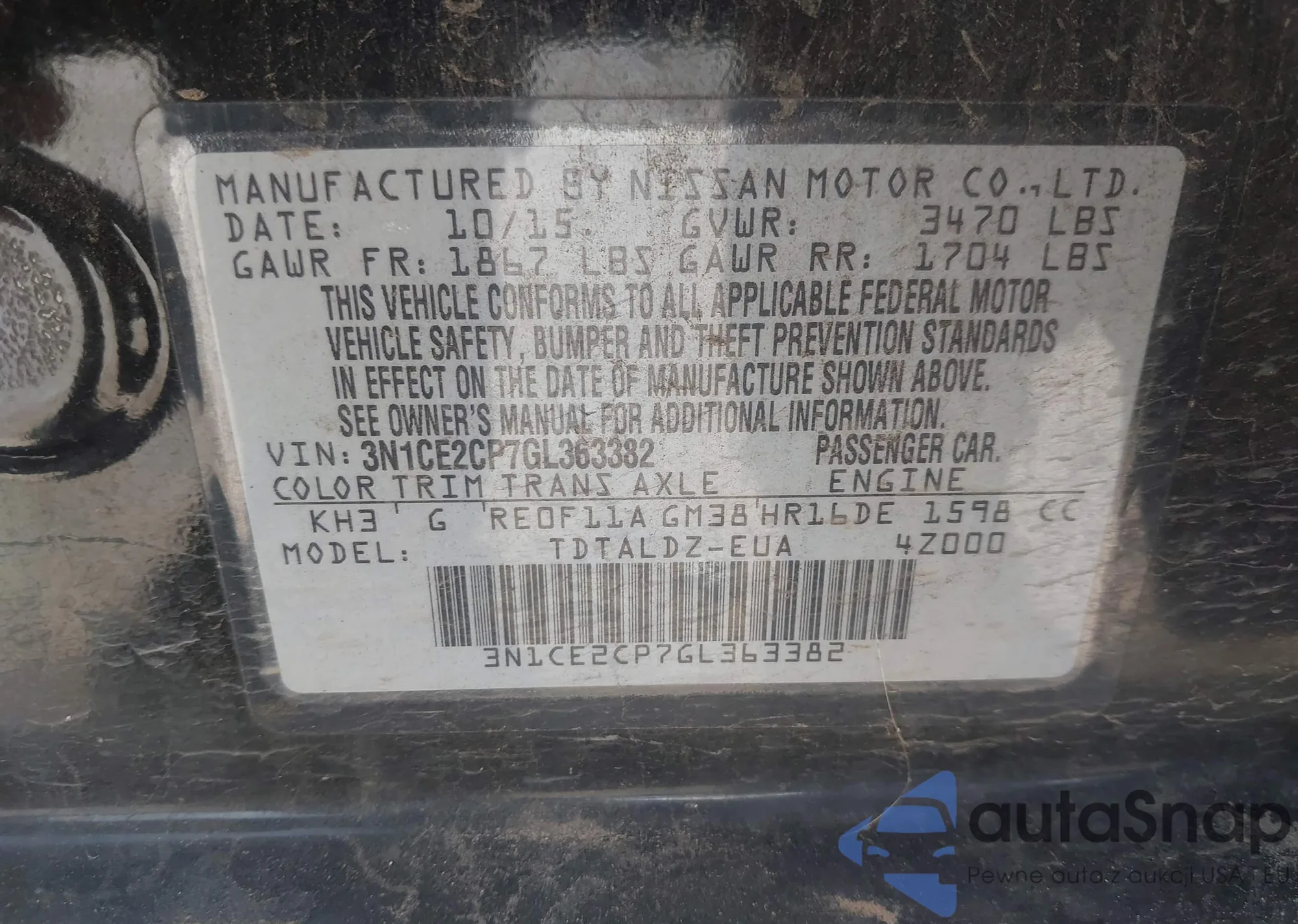 • VIN 3N1CE2CP7GL363382