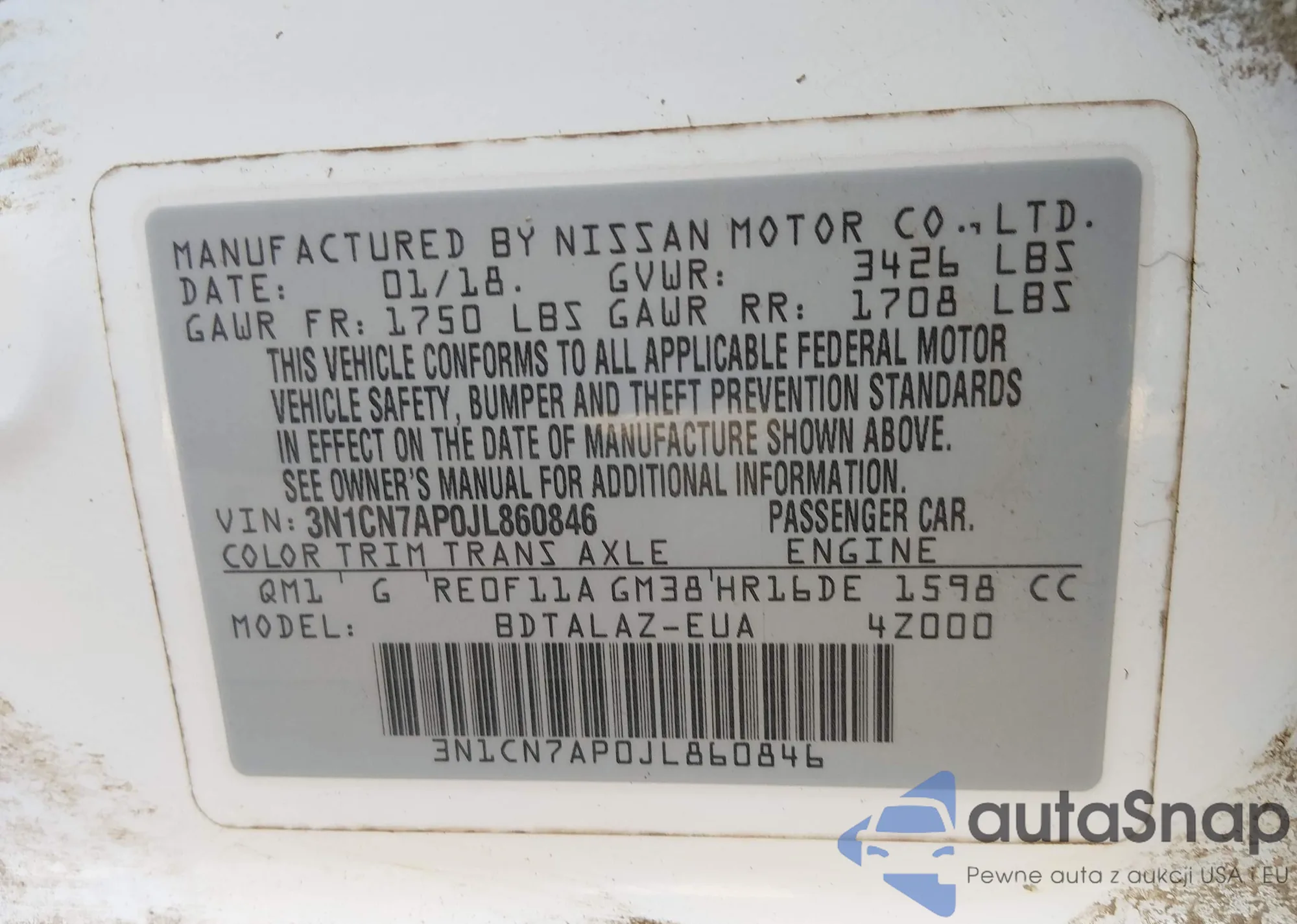 • VIN 3N1CN7AP0JL860846