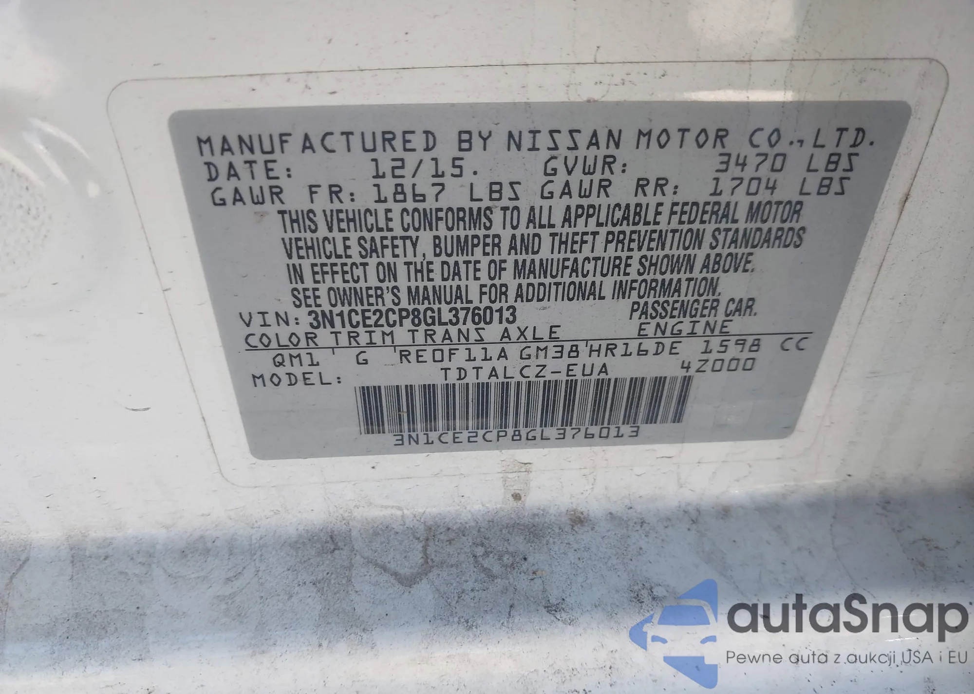 • VIN 3N1CE2CP8GL376013