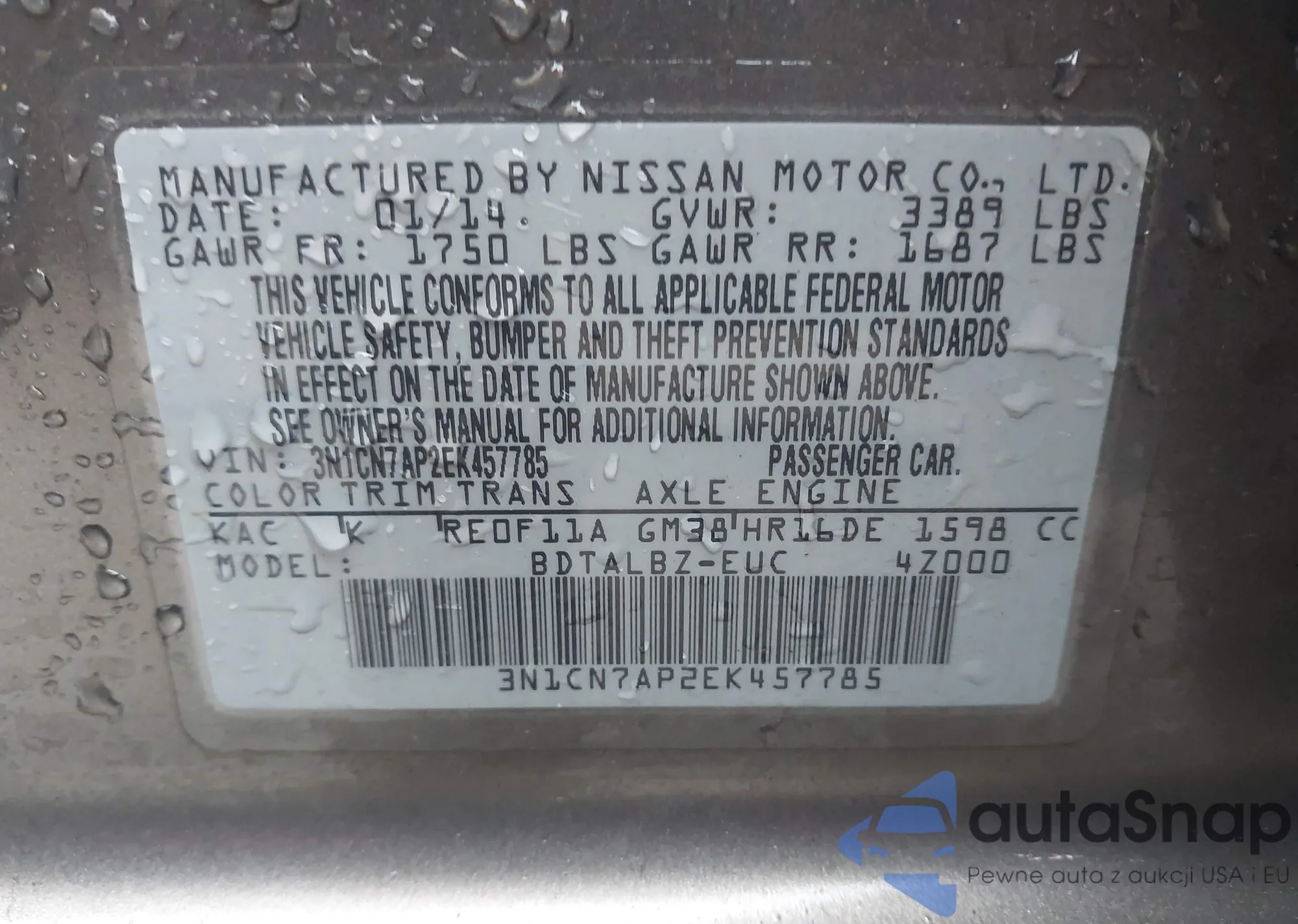 • VIN 3N1CN7AP2EK457785