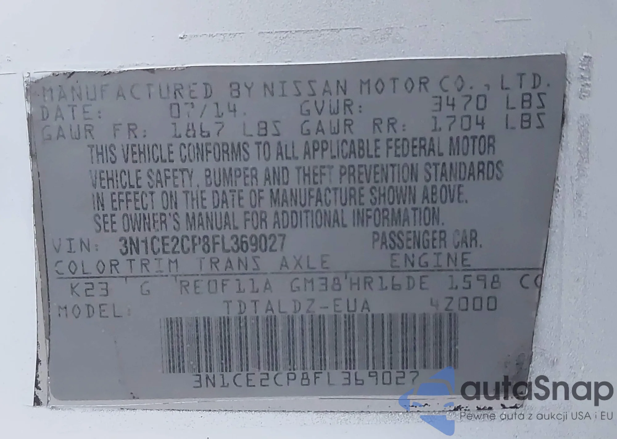 • VIN 3N1CE2CP8FL369027