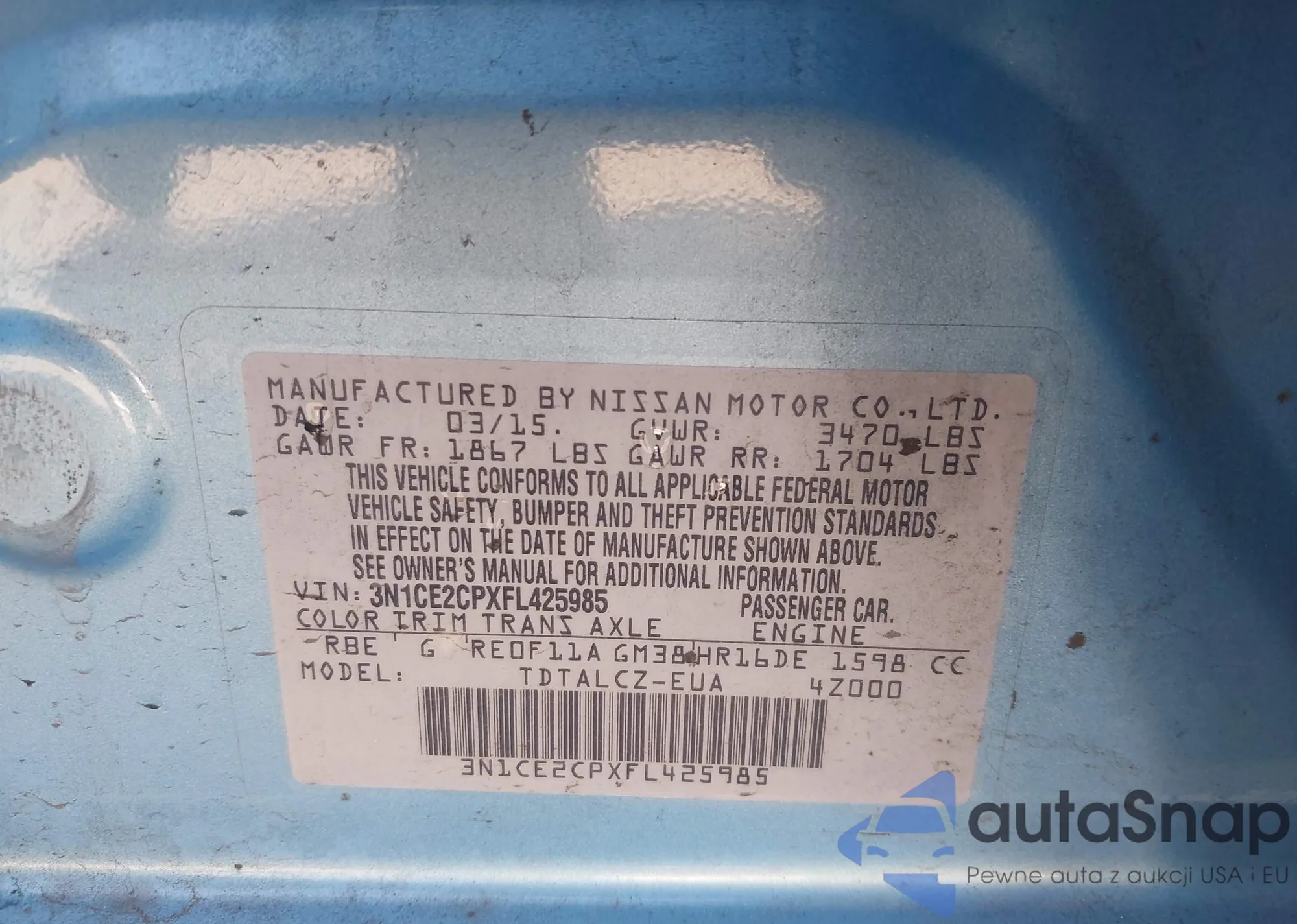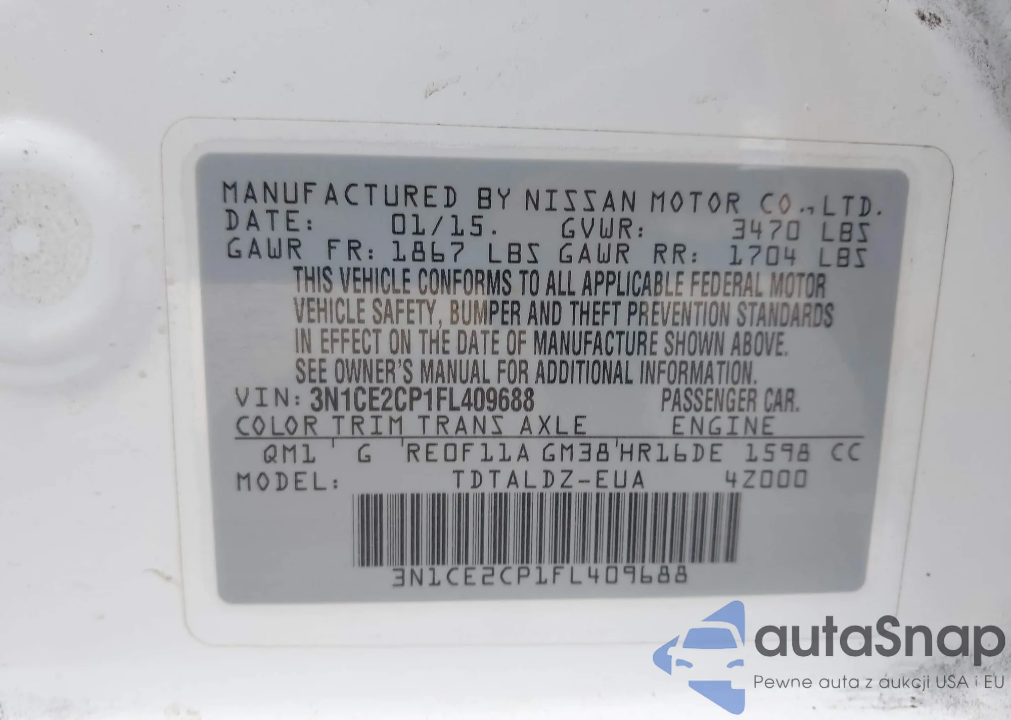 • VIN 3N1CE2CP1FL381553