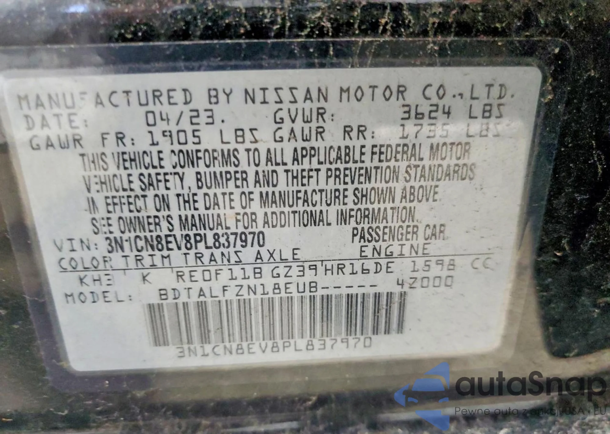 • VIN 3N1CN8EV7PL818651