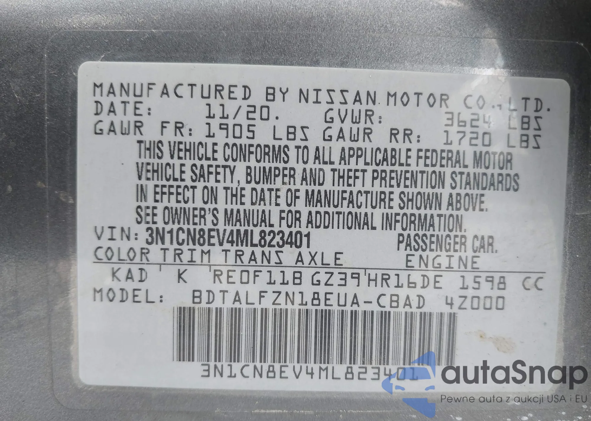 • VIN 3N1CN8EV4ML823401