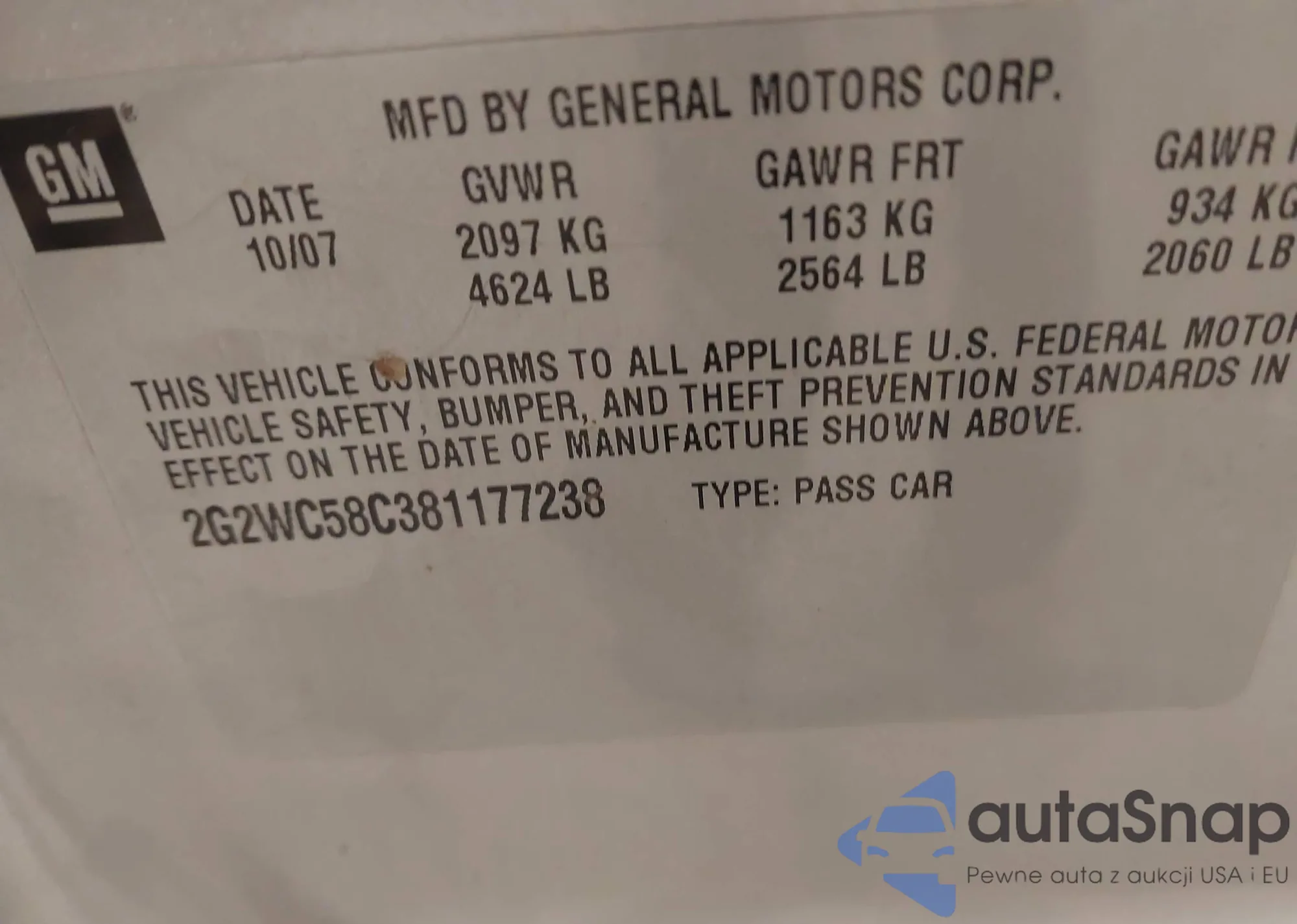 • VIN 2G2WC58C381177238