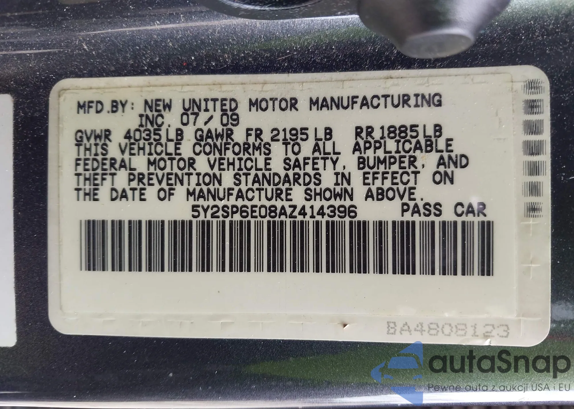 • VIN 5Y2SP6E08AZ414396