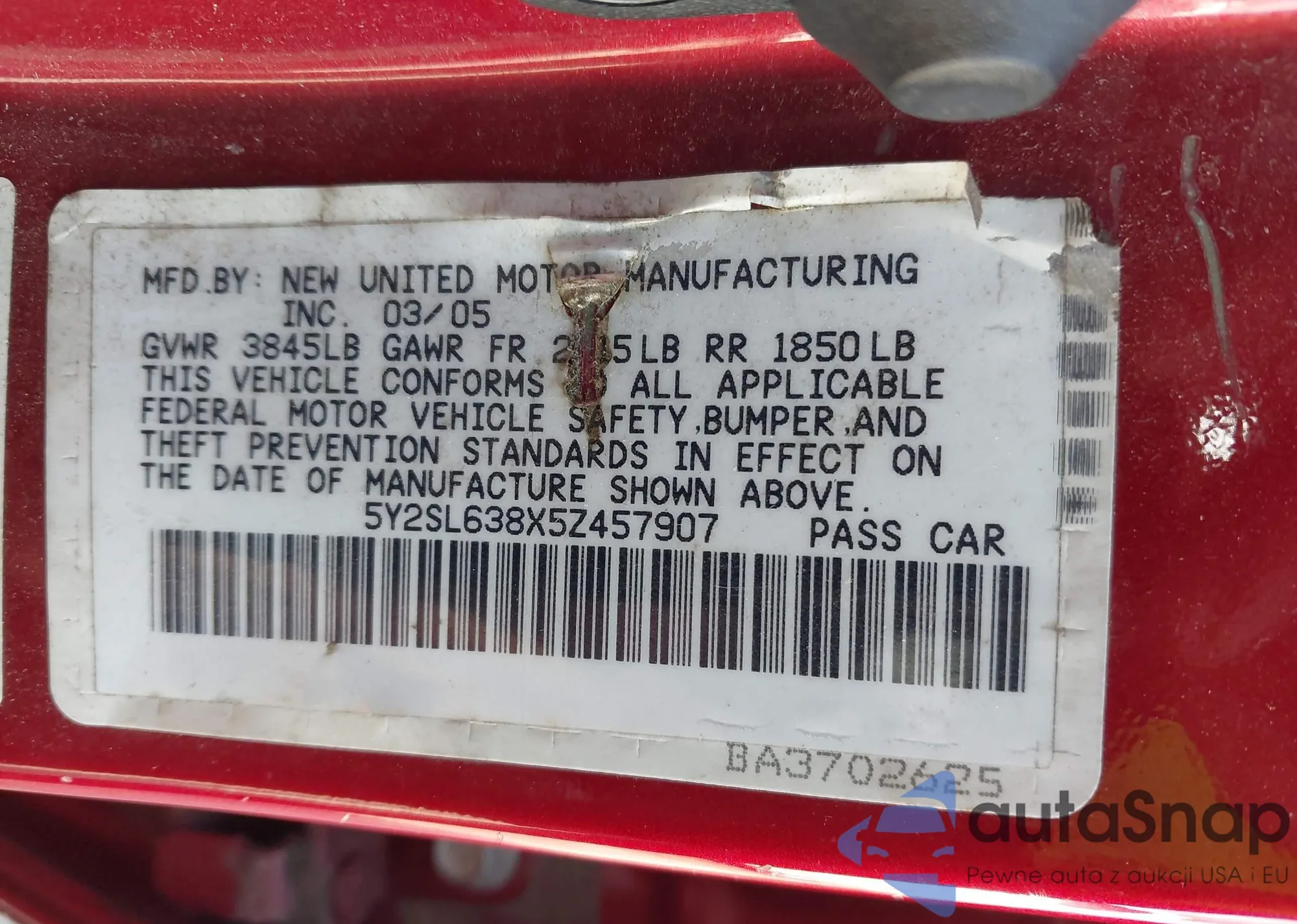 • VIN 5Y2SL638X5Z457907
