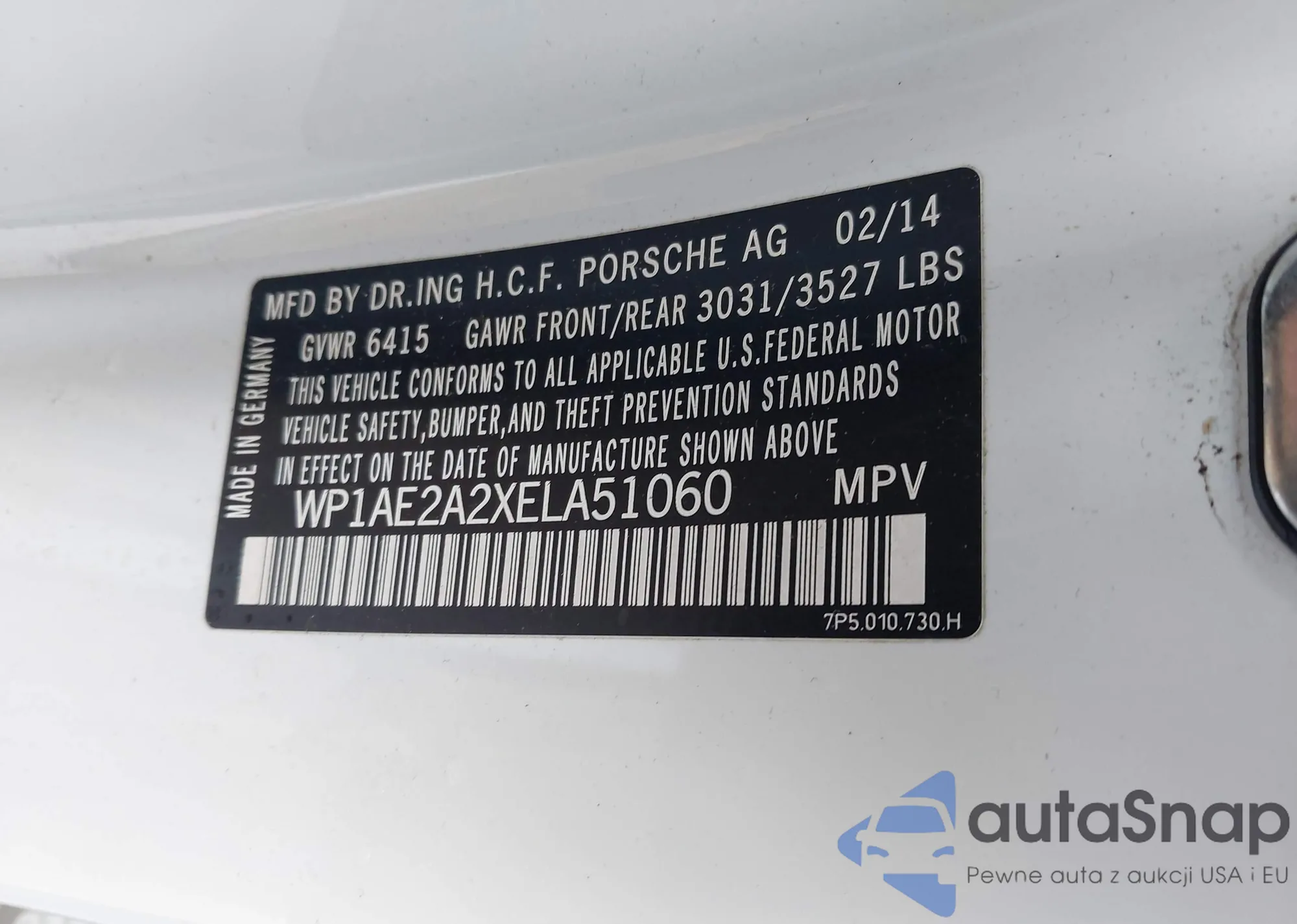 LOT: 46816996 VIN: WP1AF2A22FLA40181