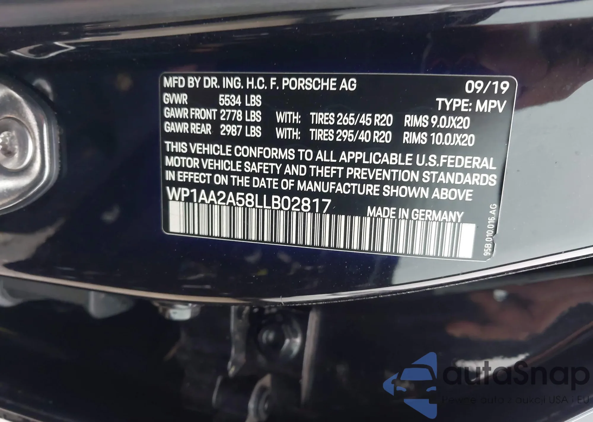 LOT: 43404795 VIN: WP1AA2A58LLB02817