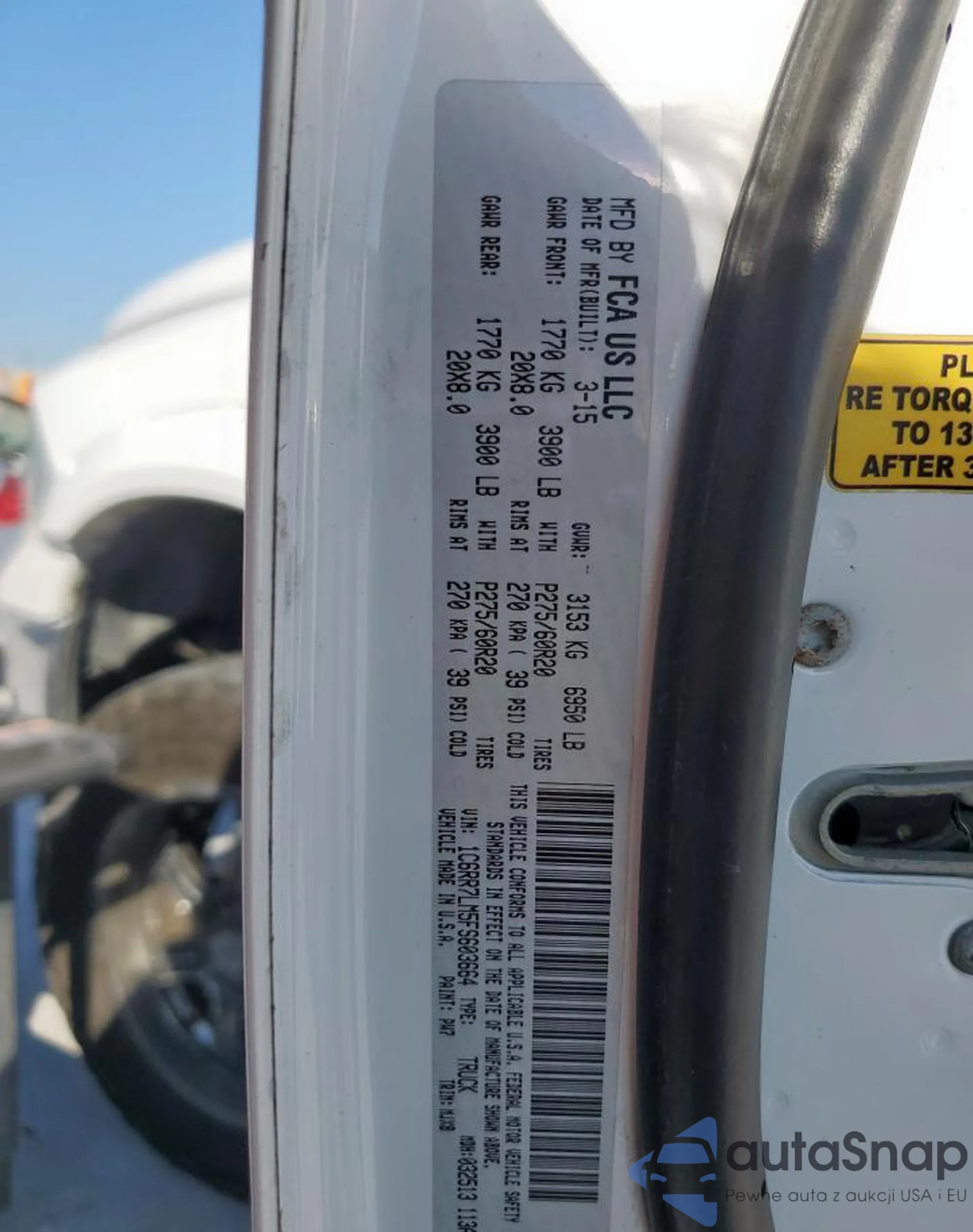 LOT: 91933715 VIN: 1C6RR7LT8FS618375