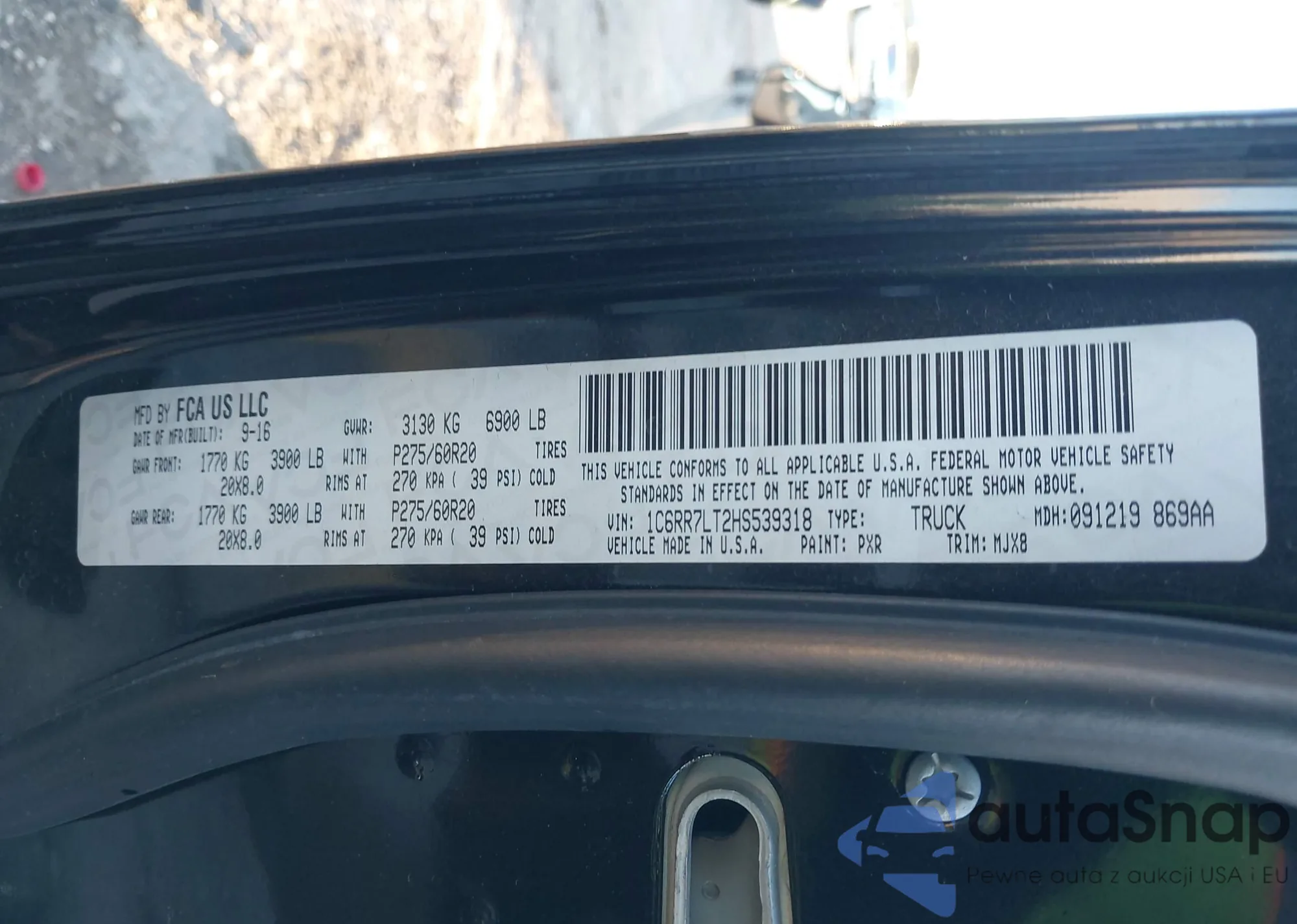• VIN 1C6RR7LT2HS539318