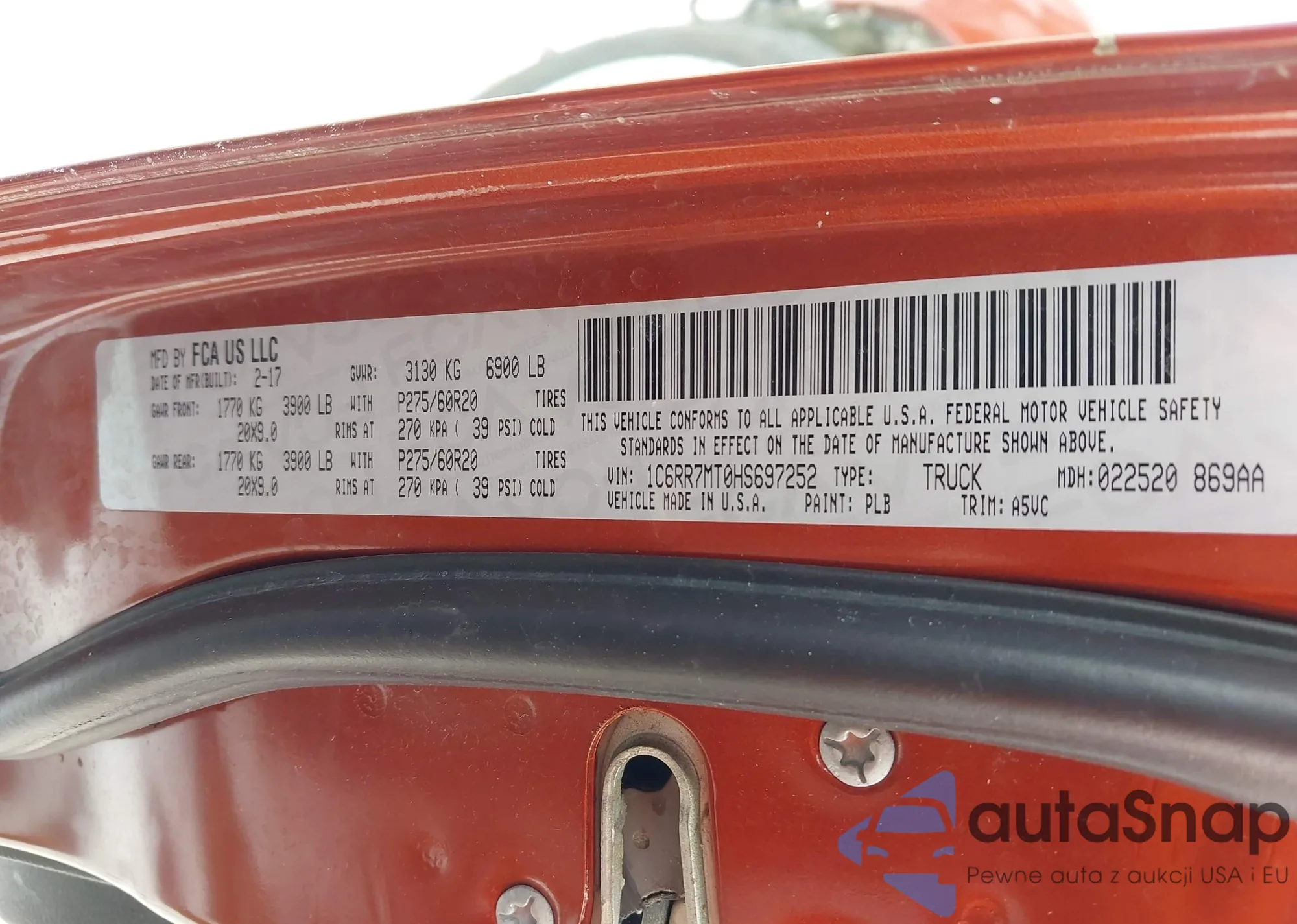 • VIN 1C6RR7NT5HS660003