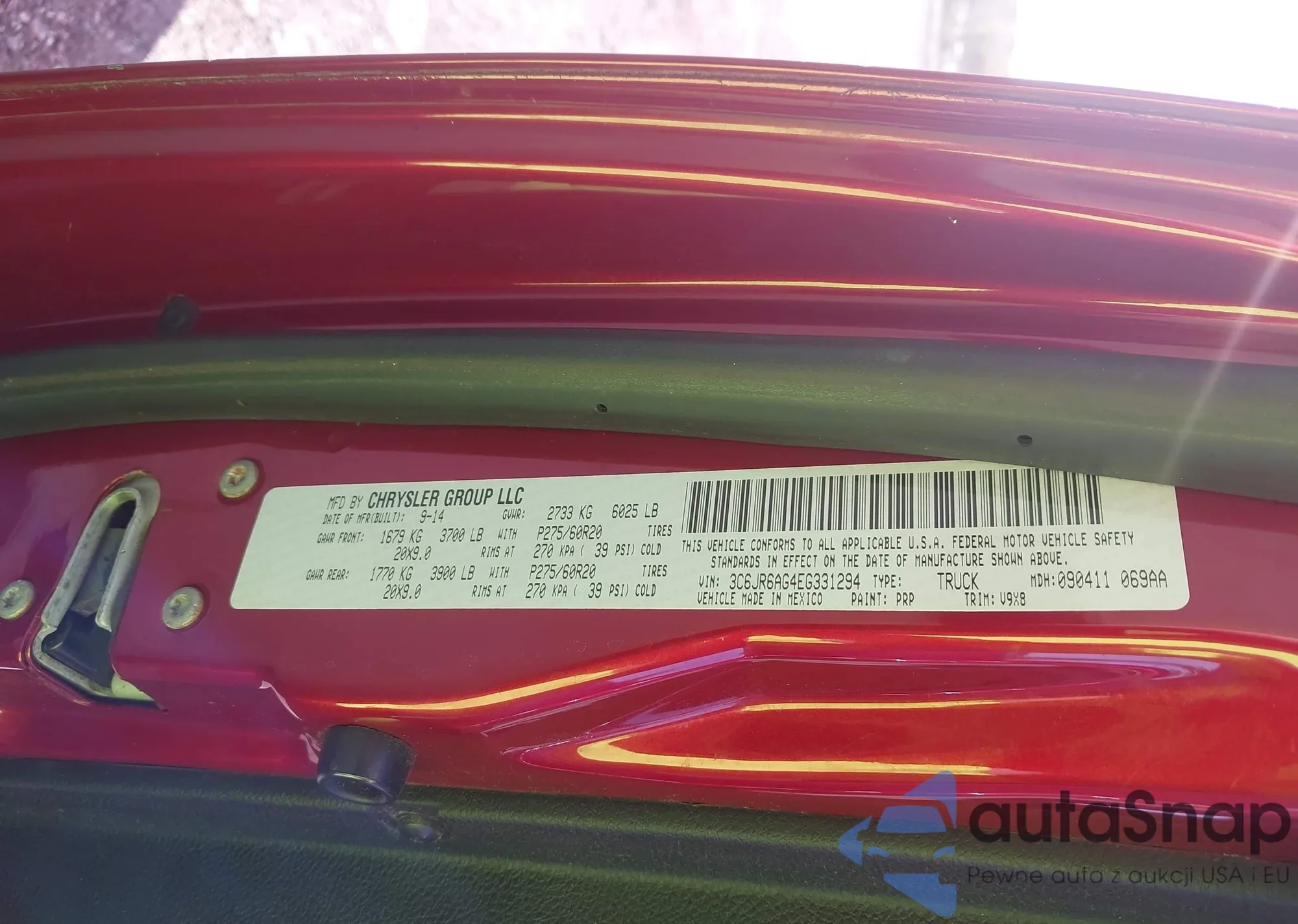 • VIN 3C6JR6AG4EG331294