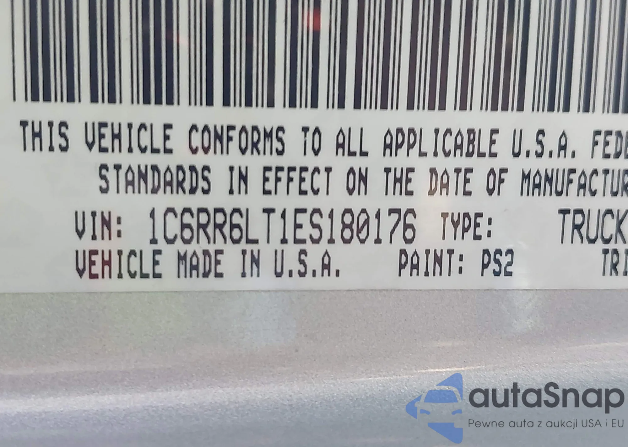 • VIN 1C6RR6LT1ES180176