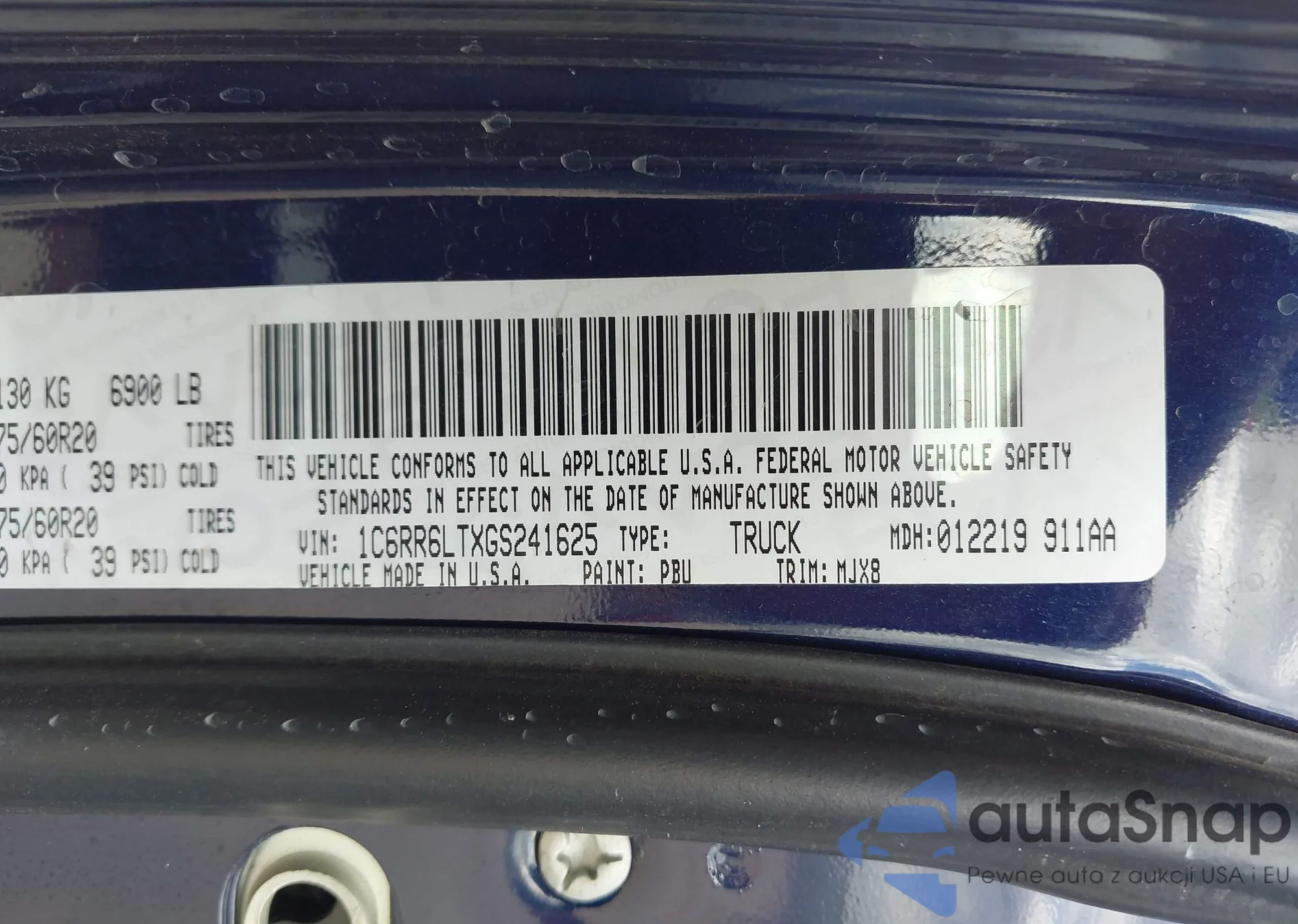 • VIN 1C6RR6LTXGS241625