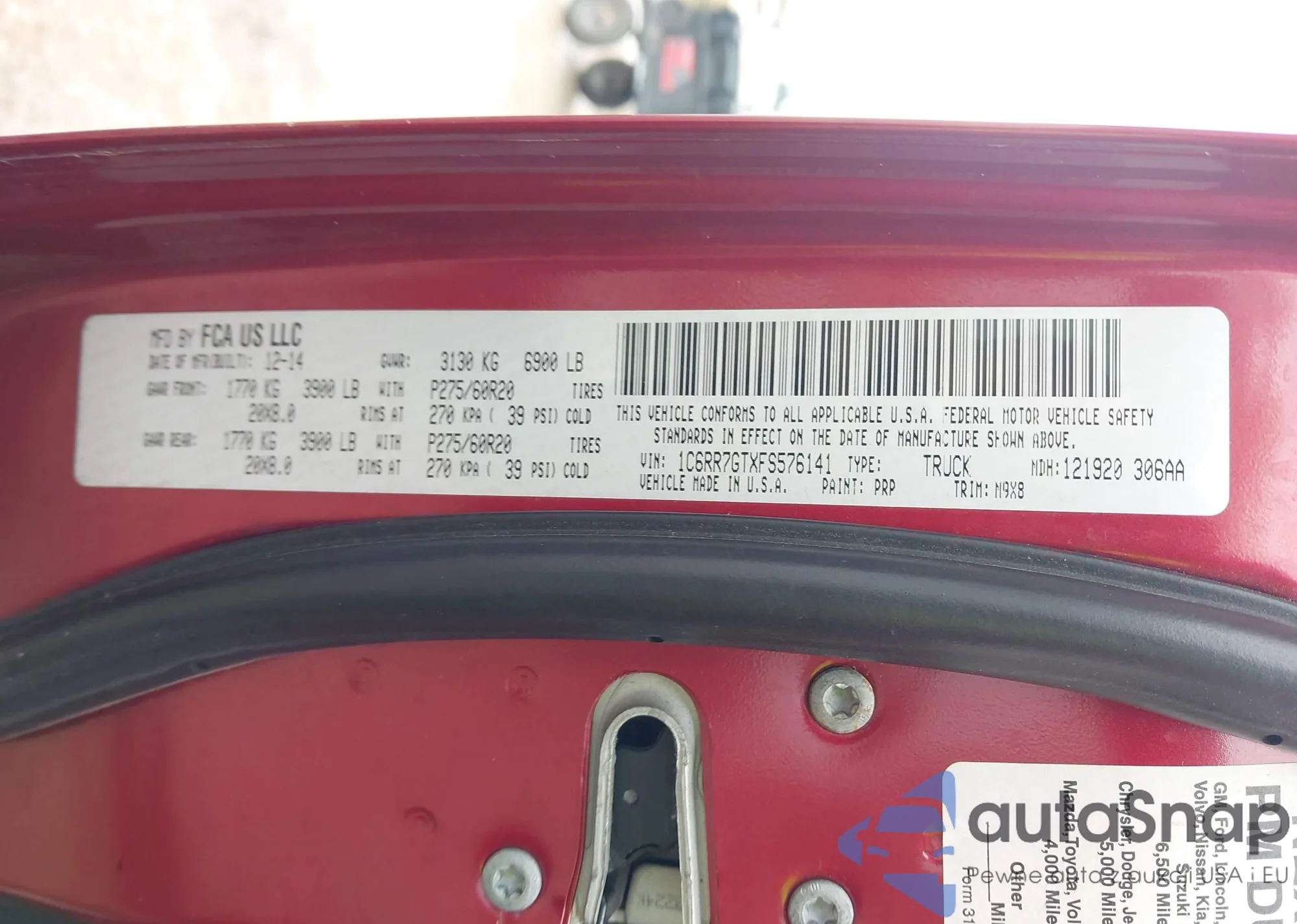 • VIN 1C6RR7GTXFS576141
