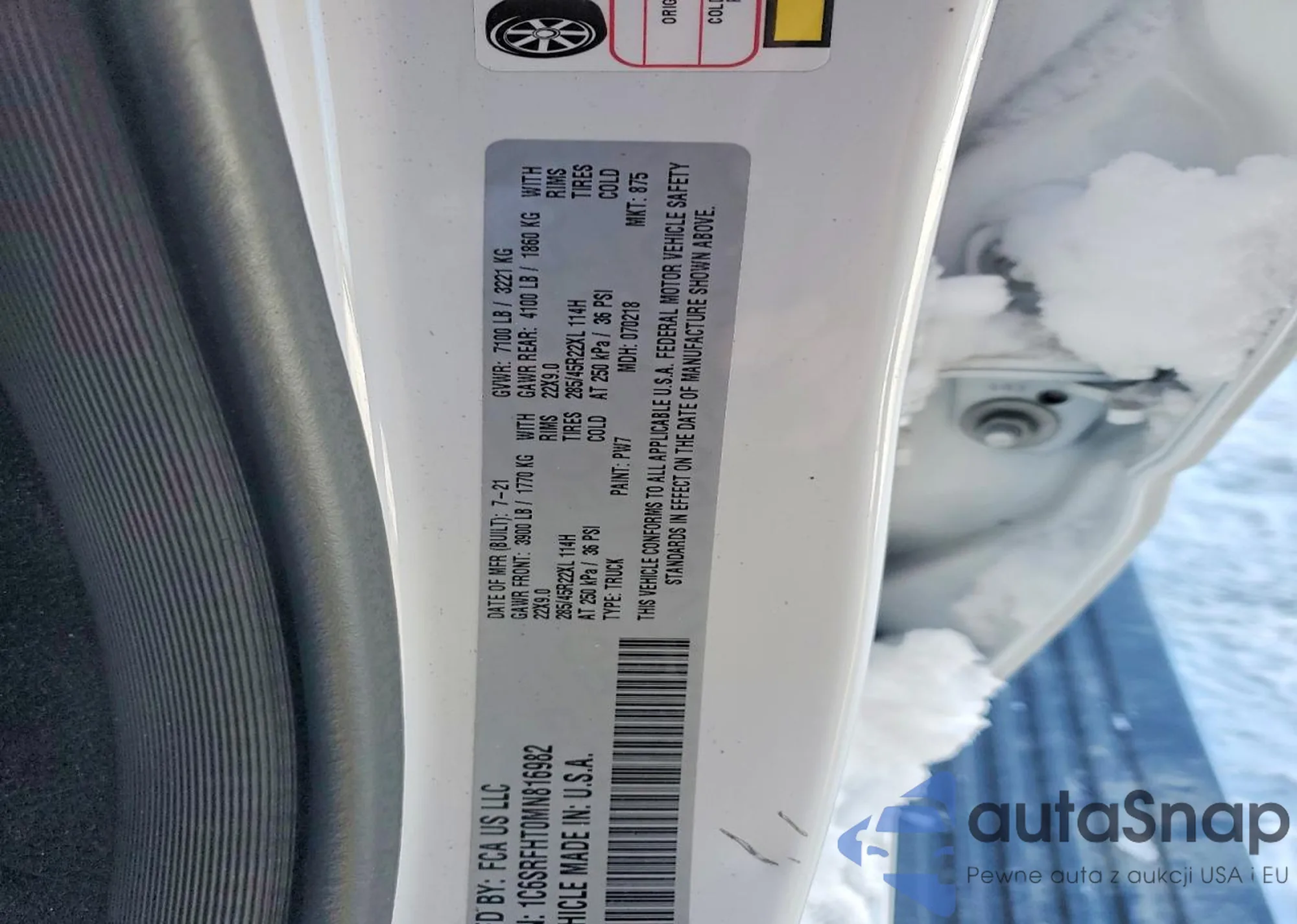 LOT: 72181075 VIN: 1C6SRFHT0MN816982