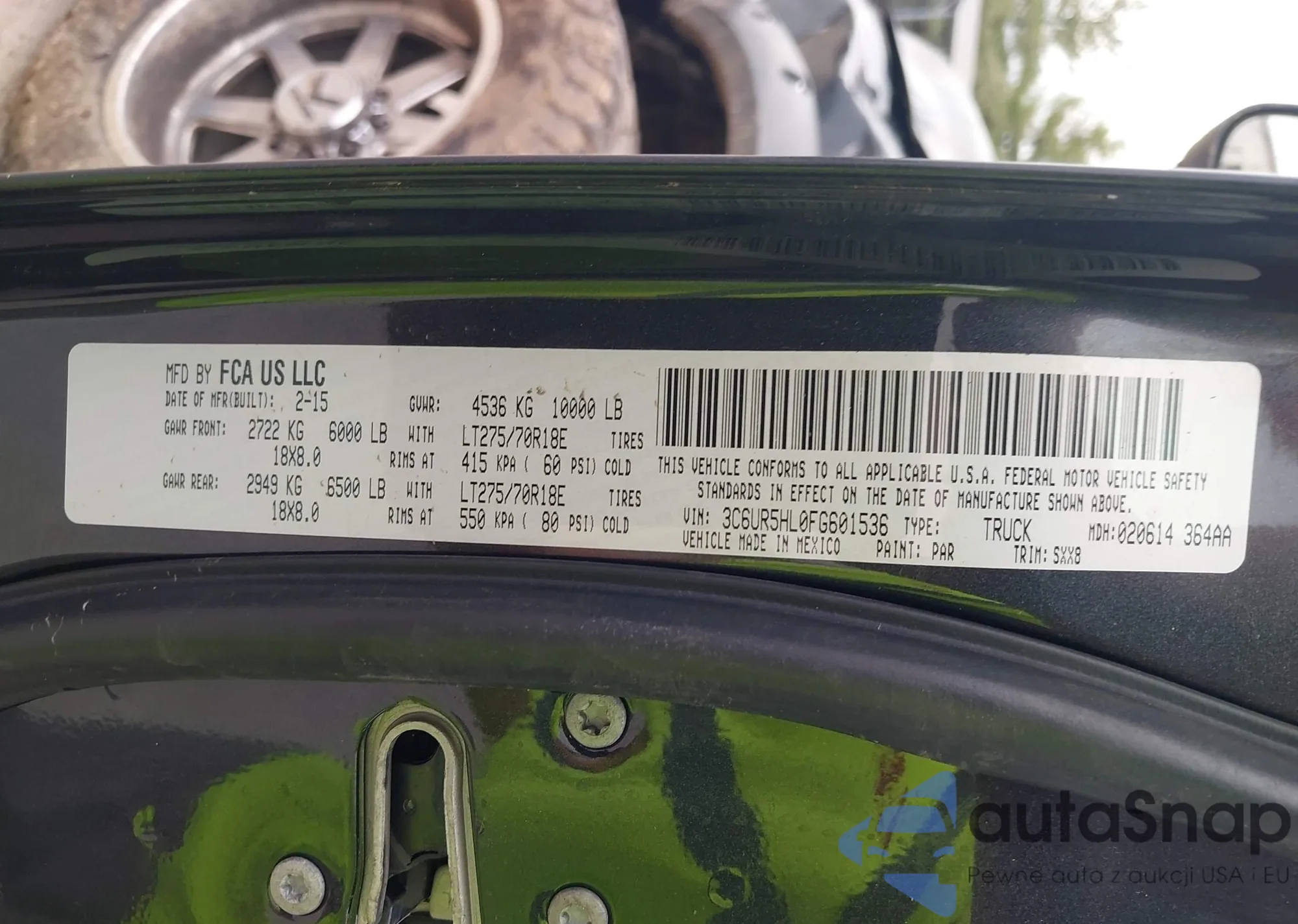 • VIN 3C6UR5HL0FG601536