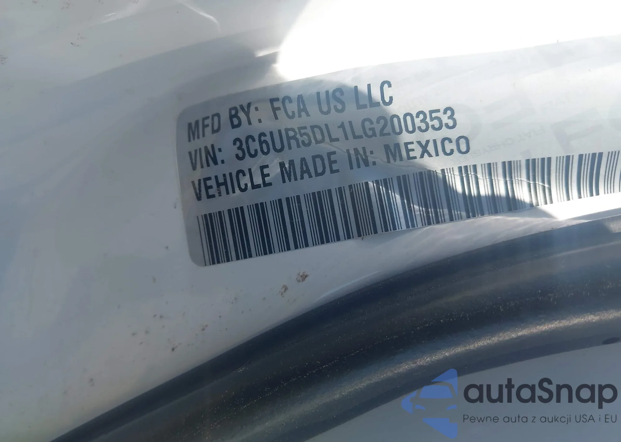 • VIN 3C6UR5DL1LG200353