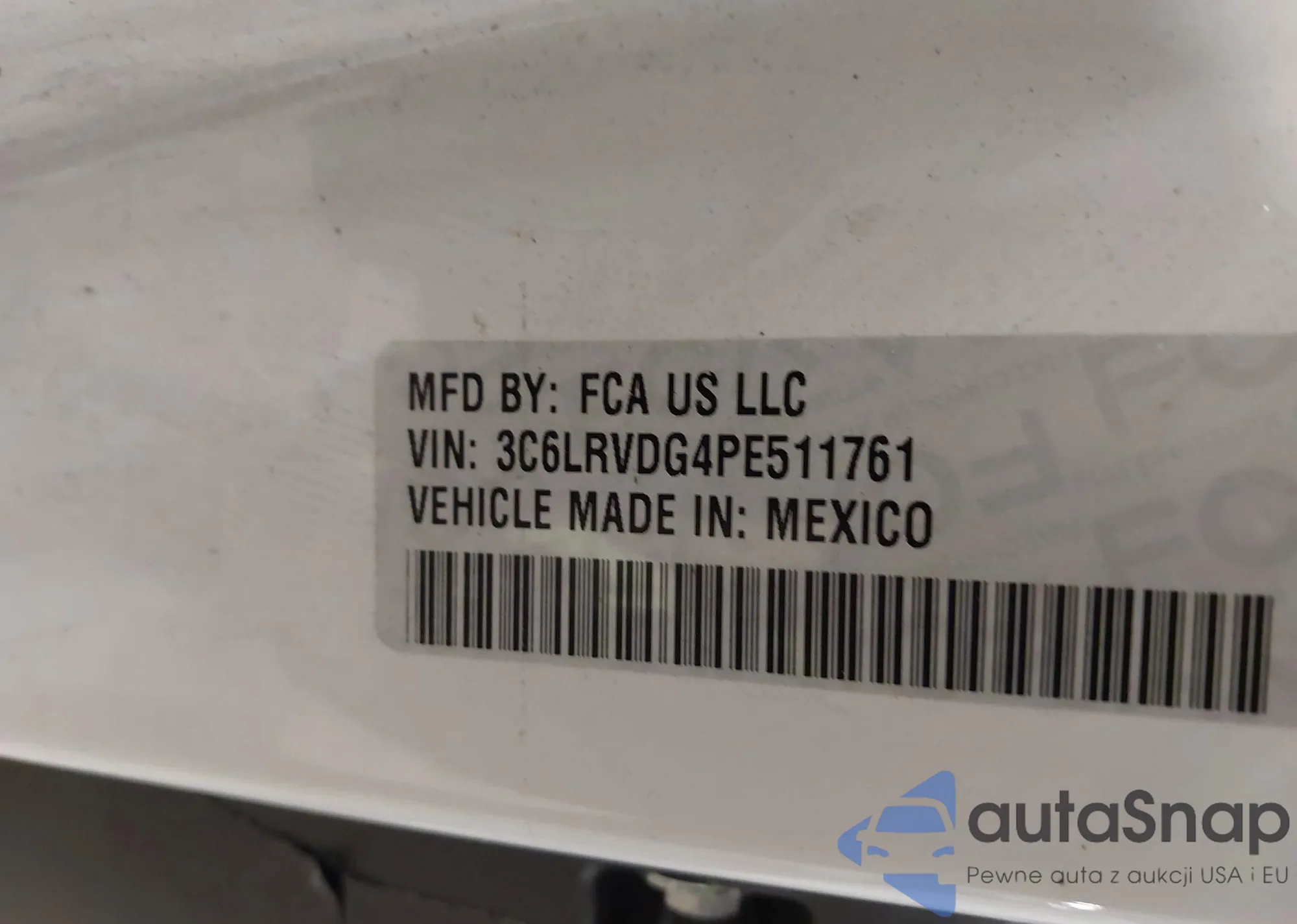 • VIN 3C6LRVDG4PE511761