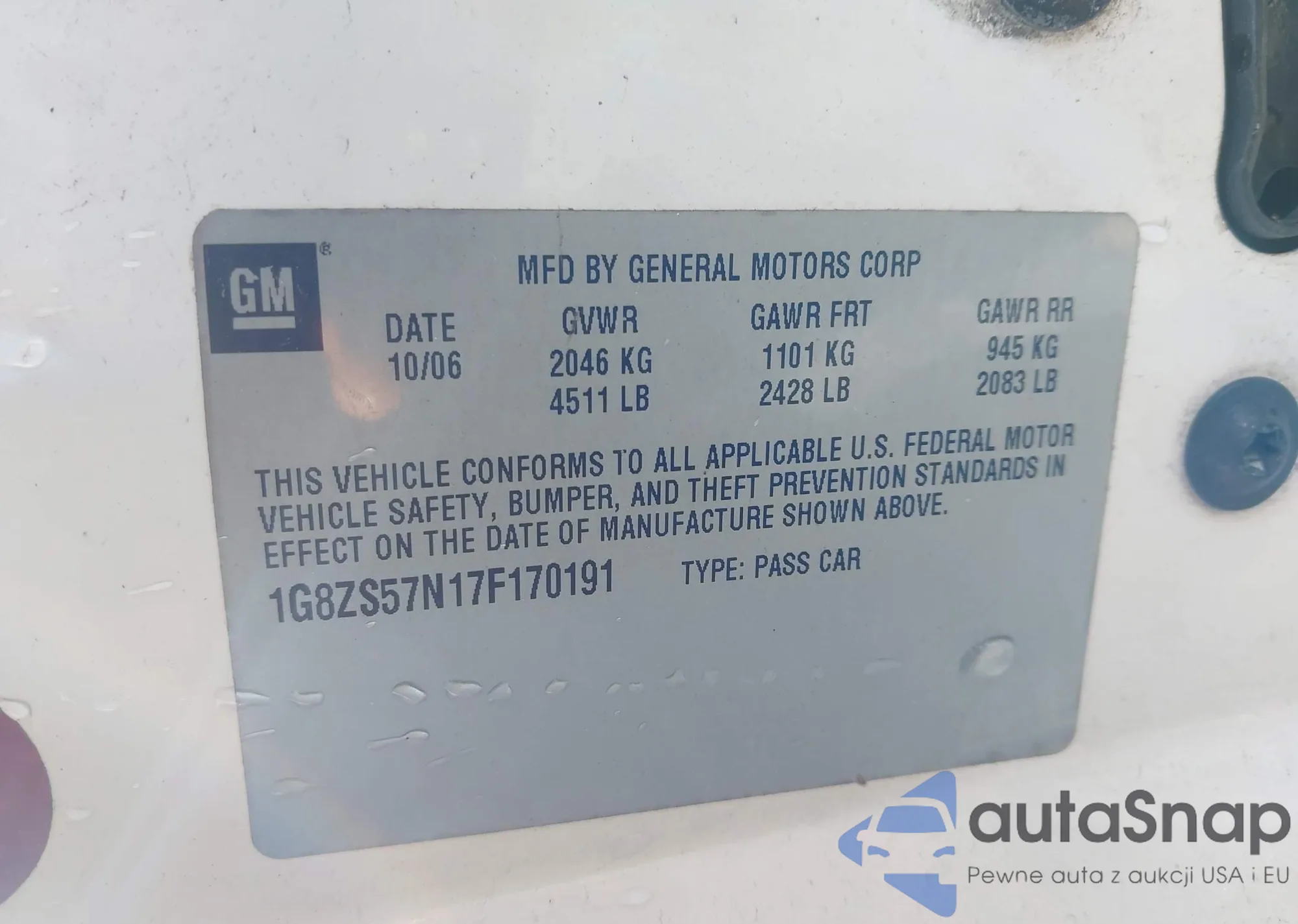 • VIN 1G8ZS57N17F170191