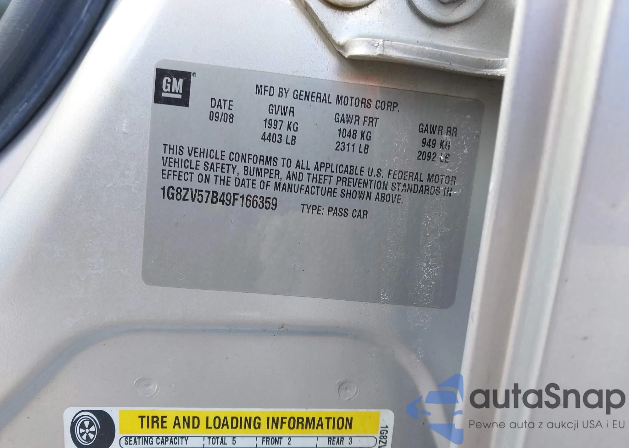 • VIN 1G8ZV57B49F166359