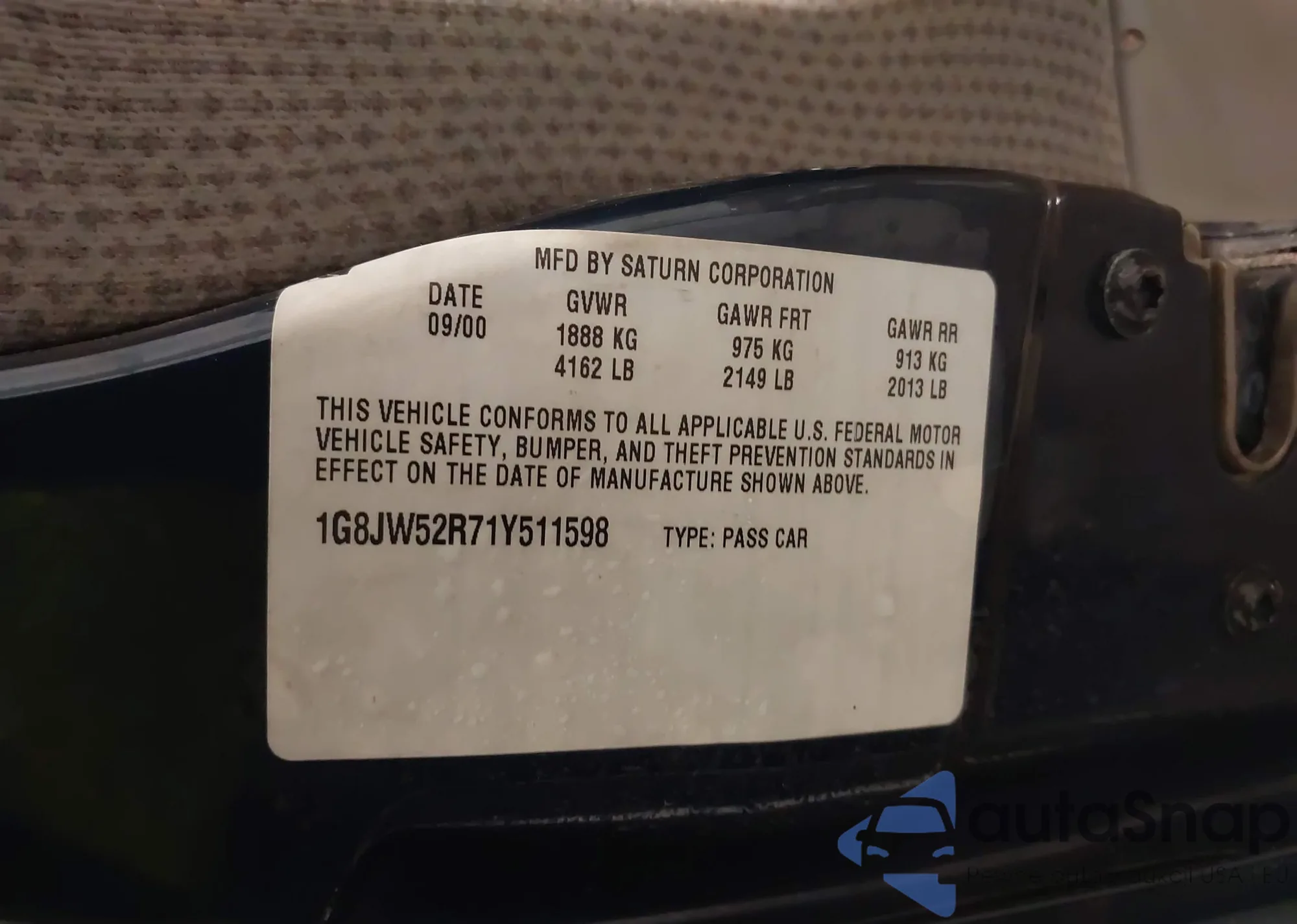 • VIN 1G8ZK8271XZ313097