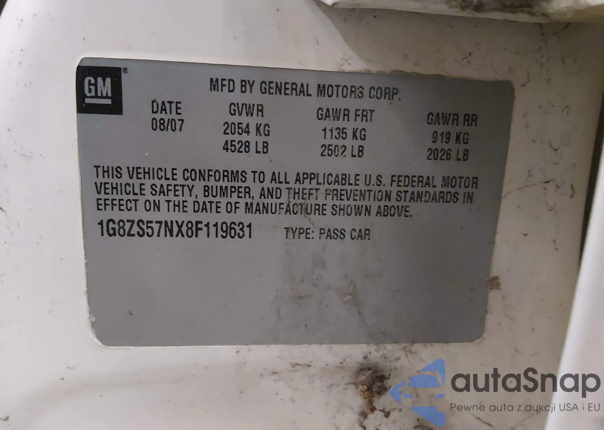 • VIN 1G8ZS57NX8F119631